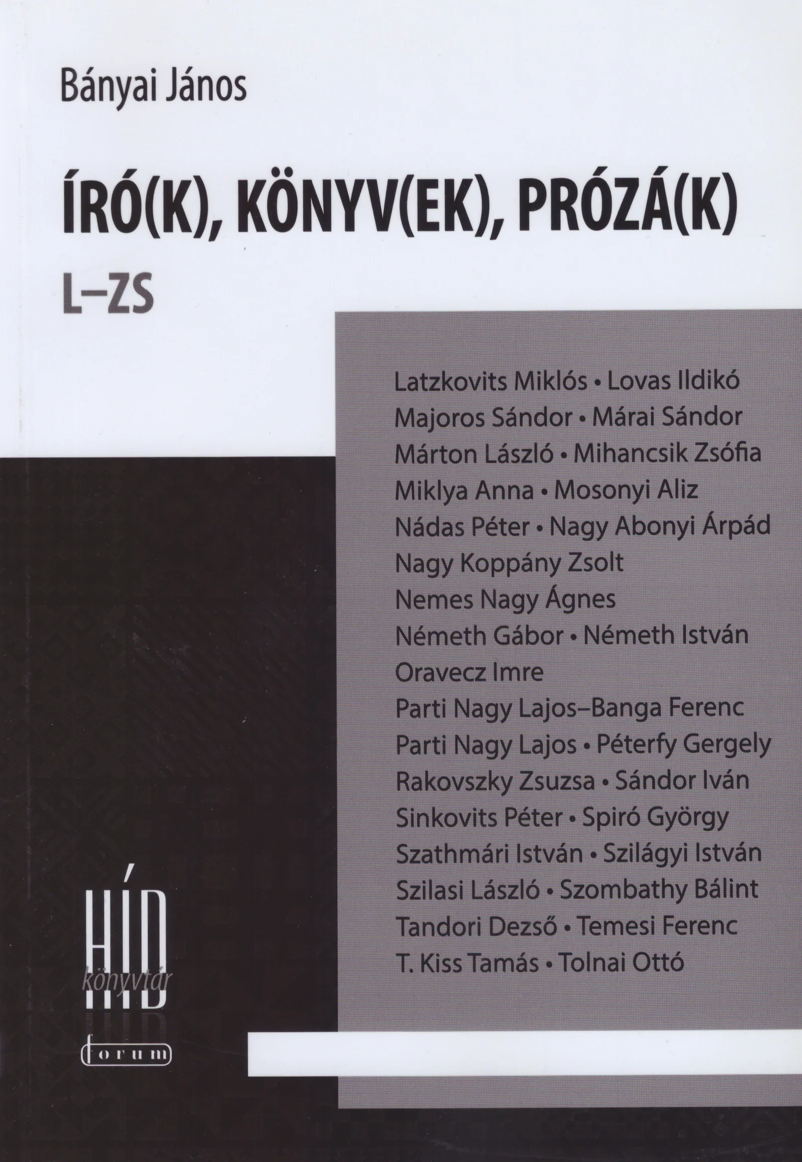 Bányai János új, Író(k), könyv(ek), prózá(k) – L–ZS című összegyűjtött kritikáit tartalmazó kötete az elmúlt 10-15 év magyar prózatermés-értelmezéseinek második része. A könyv két sorozatnak is része, a Könyv és kritika 6. darabja, valamint a Híd Könyvtár 19. kiadványa. A kritikusi pozícióba helyezkedő irodalomtörténész megtartotta a korábbi kritikaírói megszólalási stílust, a kizárólagos, éles kritika helyett az olvasónapló és a bírálat határmezsgyéjén elhelyezkedve tárja elénk gazdag olvasmányélményét. Igaz e kötetére is Kovács Krisztina a Költő(k), könyv(ek), vers(ek) című, előző kritikakötet kapcsán tett megjegyzése: „Az irodalomtörténész, kritikus értelmezői karakterében szikár, objektivitásra törekvő, a szövegekre fókuszáló és műközpontú felfogást ismerhetünk fel.”