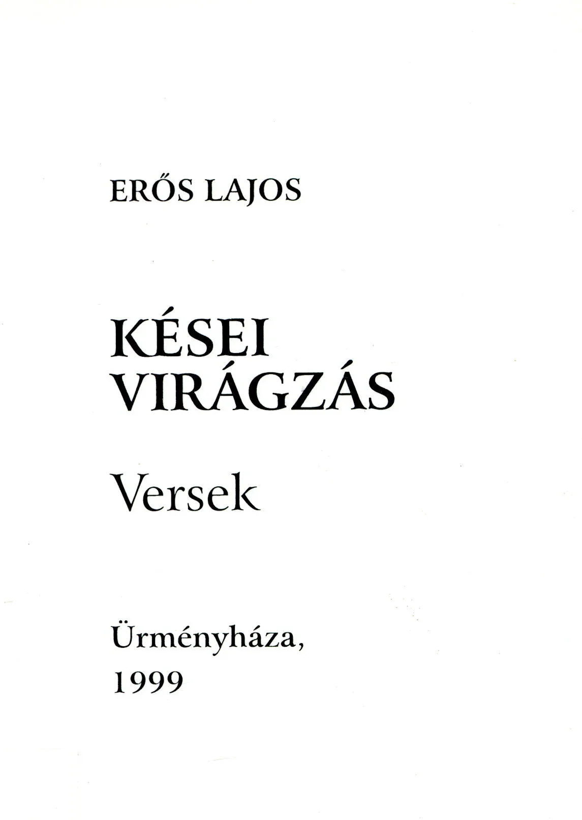 MerengésSzerző:Erős LajosKiadás éve és helye:2003, ÜrményházaMűfaj:VersKiadó:Római Katolikus Plébániahivatal
