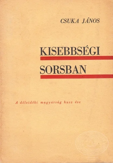 Kisebbségi sorsban II.Szerző:Csuka JánosKiadás éve és helye:1941, SzabadkaMűfaj:Elbeszélés, NovellaKiadó:Minerva