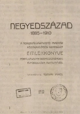 1885–1910. A Torontálvármegyei Magyar Közművelődési Egyesület emlékkönyve fönállásának negyedszázados évfordulója alkalmából