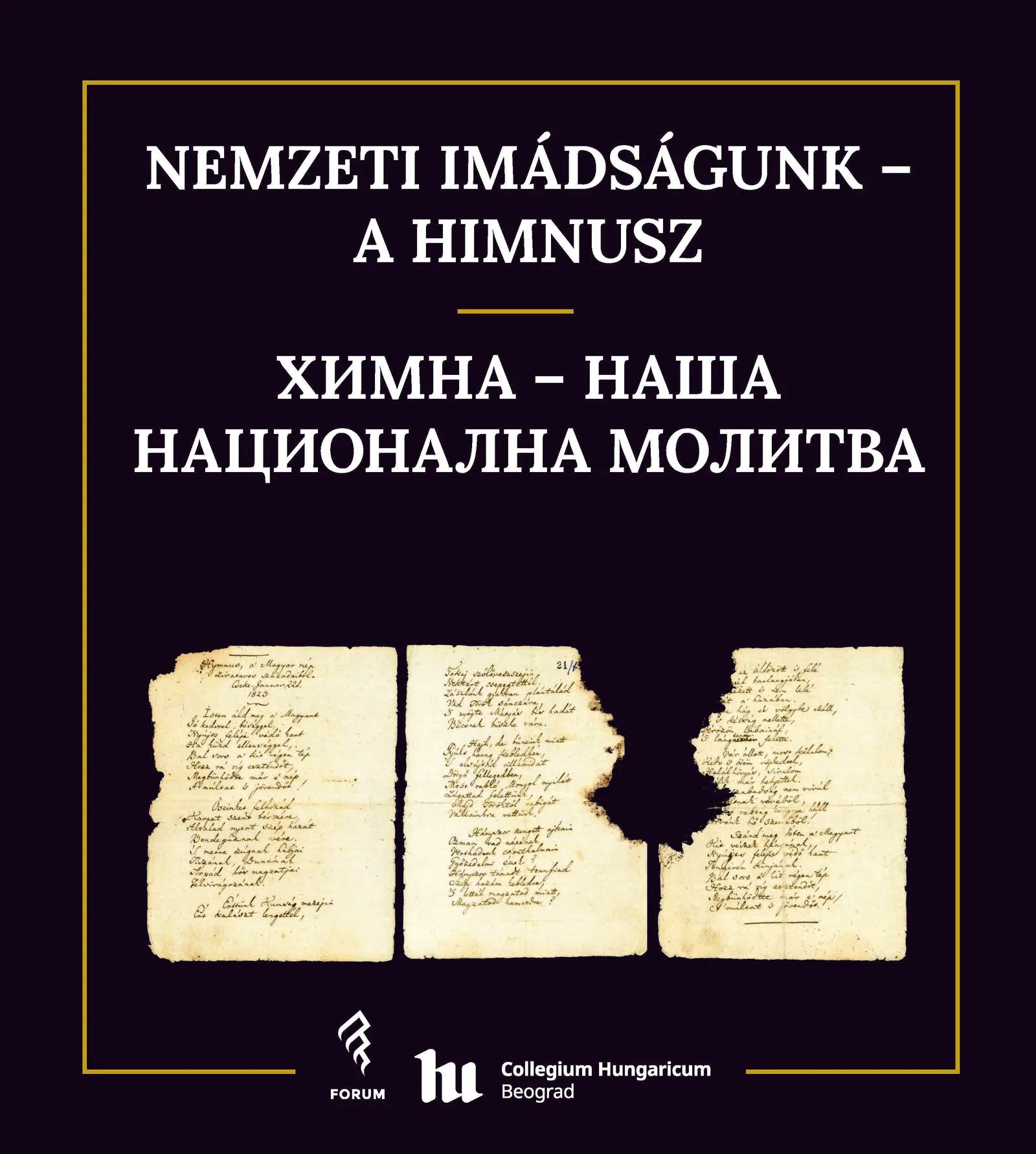 Magyarként mindannyiunk számára természetes, hogy tudjuk, a Himnuszt Kölcsey Ferenc írta és Erkel Ferenc zenésítette meg. Az viszont már kevésbé ismert, hány nyelvre fordították le a számunkra legfontosabb költeményt, ezek a fordítások mikor keletkeztek és egyáltalán miért is fontos, hogy idegen nyelveken is megjelent nemzeti imádságunk. […] Napjainkig, a magyaron kívül, összesen huszonhat nyelven látott napvilágot. […] Kiadványunkat hiánypótlónak szánjuk, hiszen a fent említett huszonhat nyelv között nem szerepel a szerb nyelv. Tekintettel azonban a kiváló kétoldalú kapcsolatokra, úgy gondoltuk, fontos lenne, ha a Himnuszt déli szomszédunk nyelvére is lefordítanánk, hozzájárulva ezzel a két nép közti kapcsolatok további mélyítéséhez. (Pintér Attila)