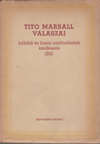 Beszéd Jugoszlávia Népfrontja 3. kongresszusán Szerző:Tito, Josip BrozKiadás éve és helye:1949, ÚjvidékKiadó:Bratstvo-Jedinstvo