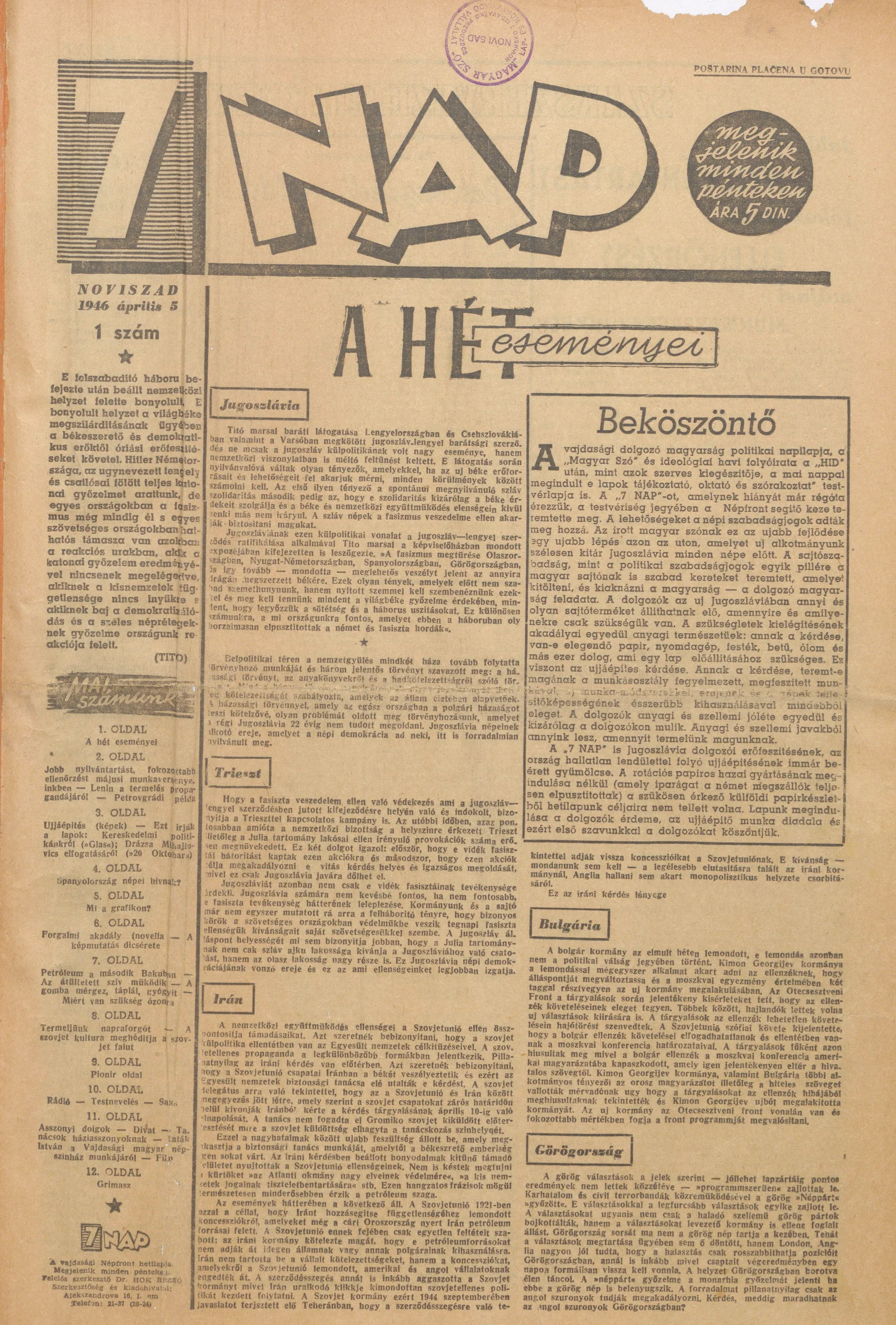 - Ezt írják a lapok: Kereskedelmi politikánkról ("Glas"), Drázsa Mihajlovics elfogatásáról ("26. Oktobar")3