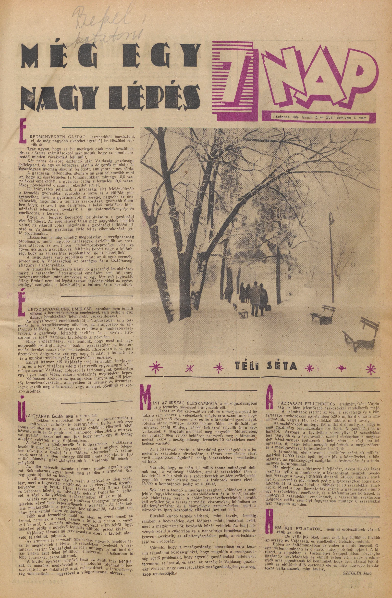 7 Nap, 19. évf. 1964. január 10. 1. sz. 1–24. oldal
