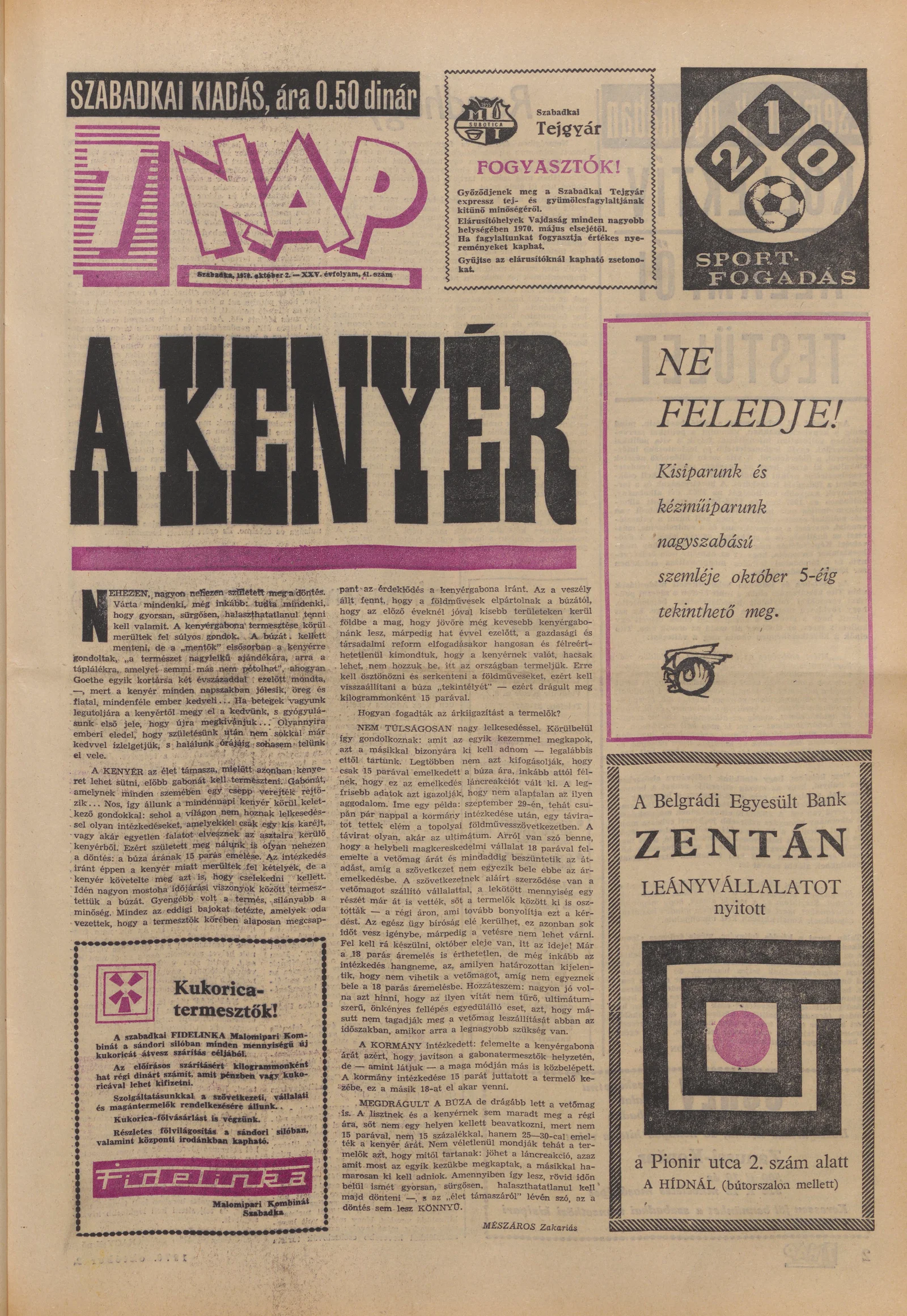 7 Nap, 25. évf. 1970. október 2. 41. sz. 1–16. oldal