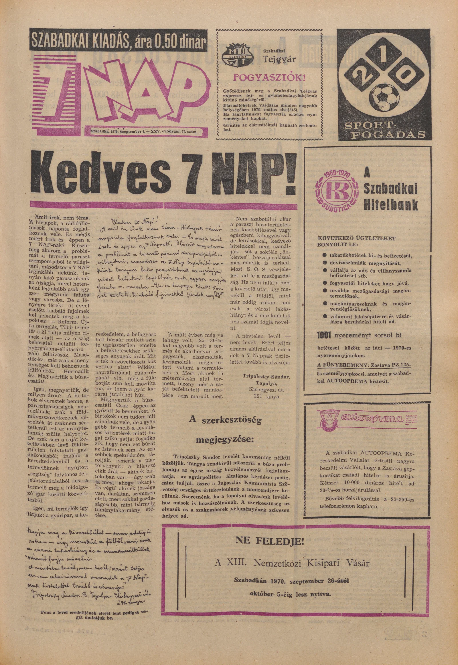 7 Nap, 25. évf. 1970. szeptember 11. 38. sz. 1–16. oldal