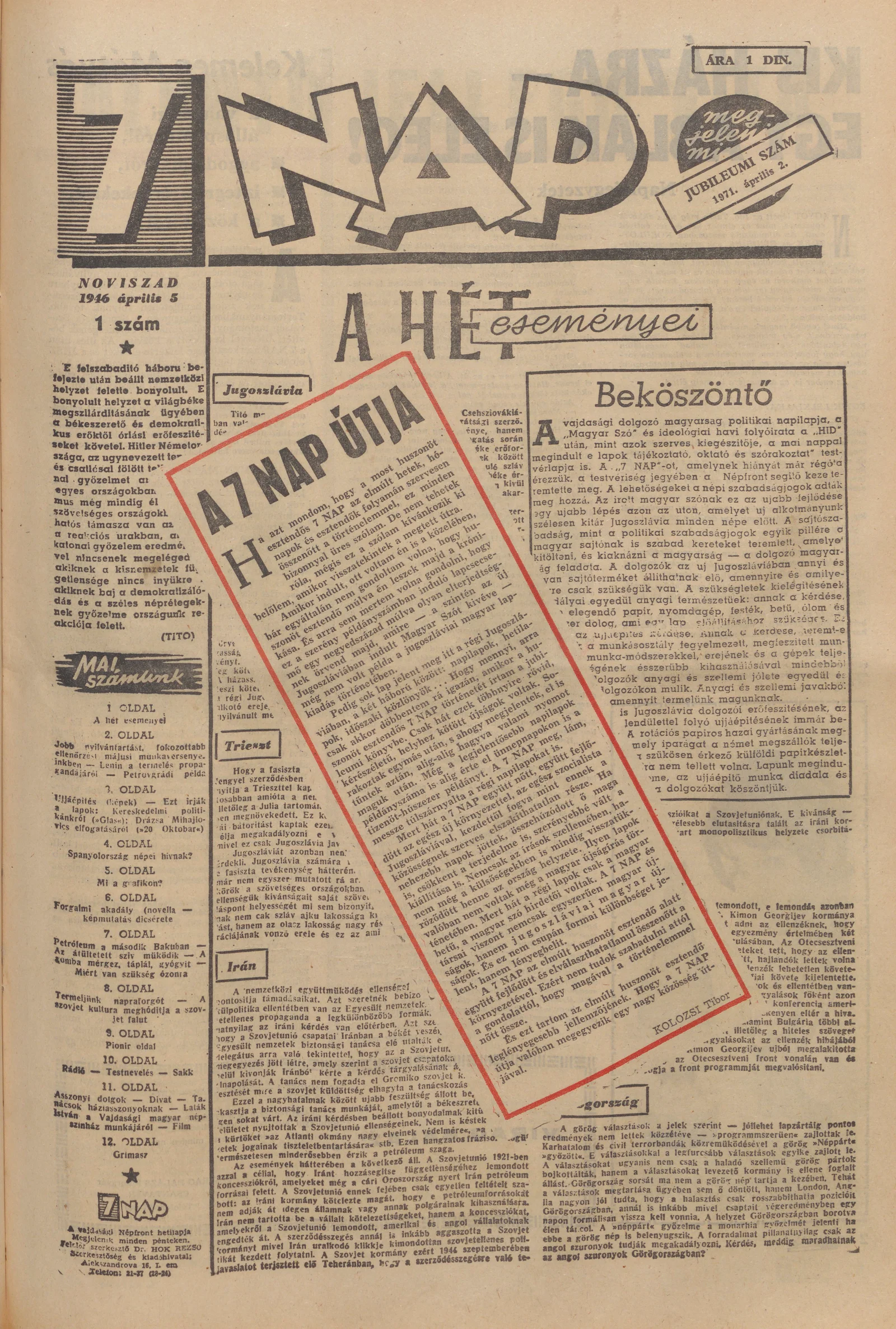 7 Nap, 26. évf. 1971. április 2. 15. sz. 1–40. oldal