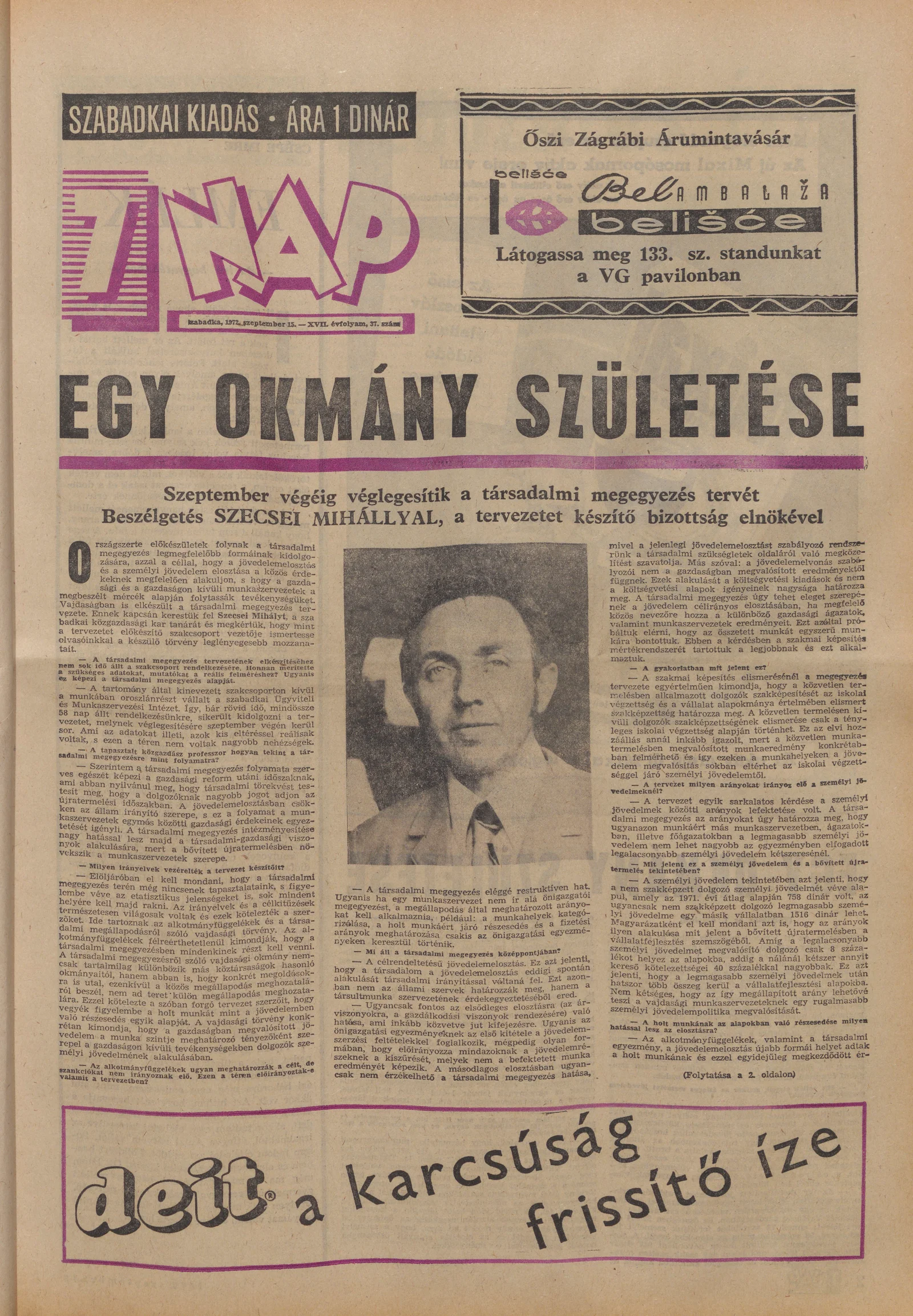 7 Nap, 27. évf. 1972. szeptember 15. 37. sz. 1–24. oldal