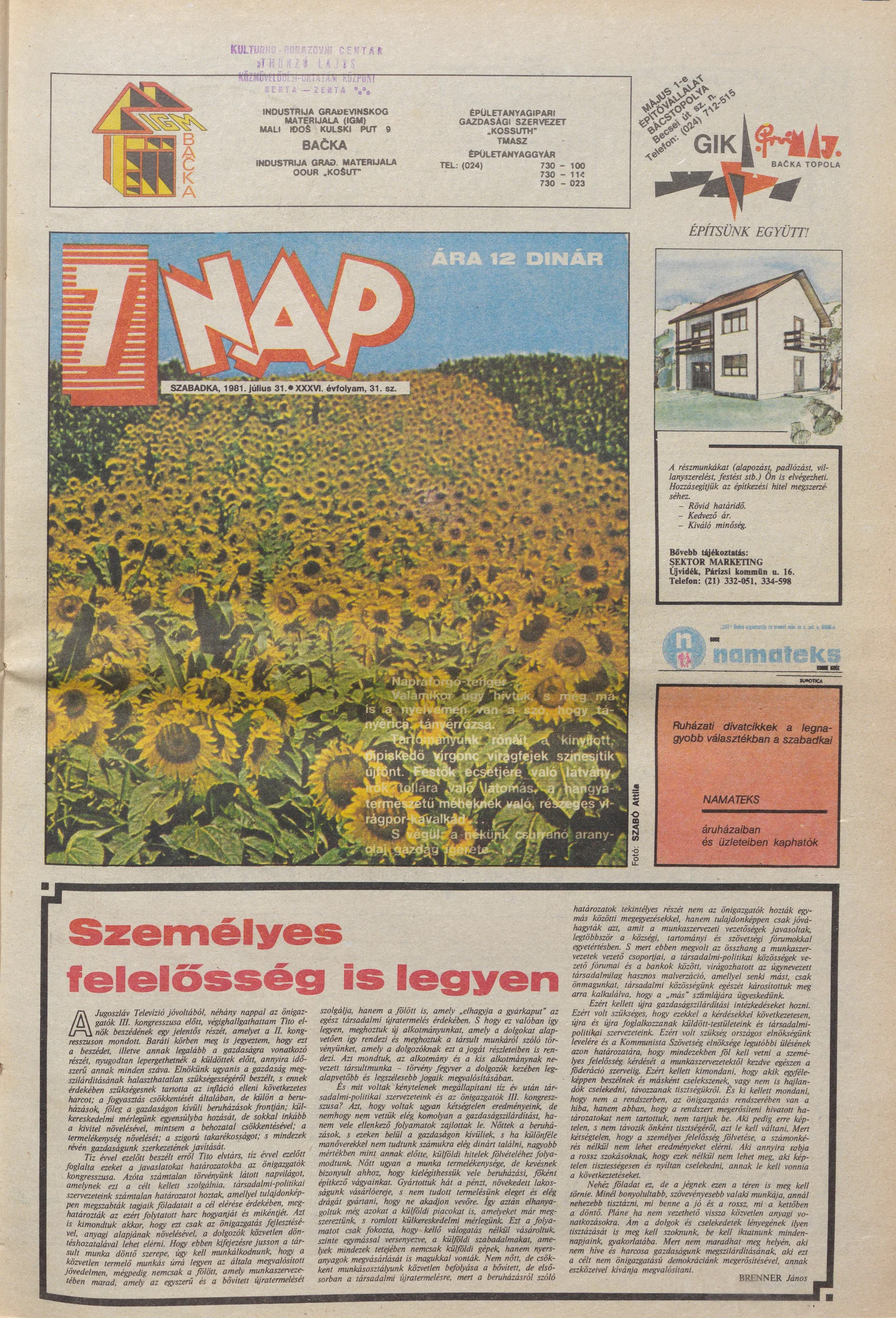 7 Nap, 36. évf. 1981. július 31. 31. sz. 1–16. oldal