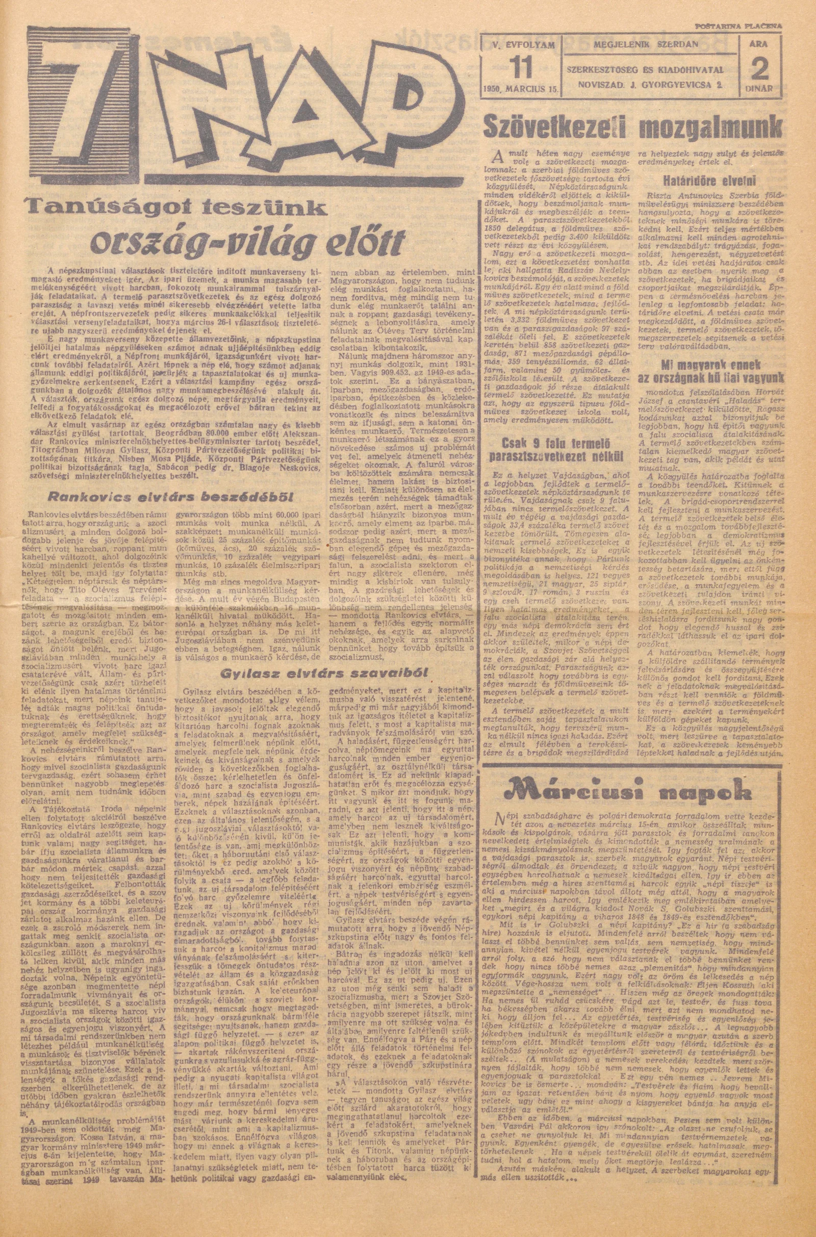 7 Nap, 5. évf. 1950. március 15. 11. sz. 1–4. oldal