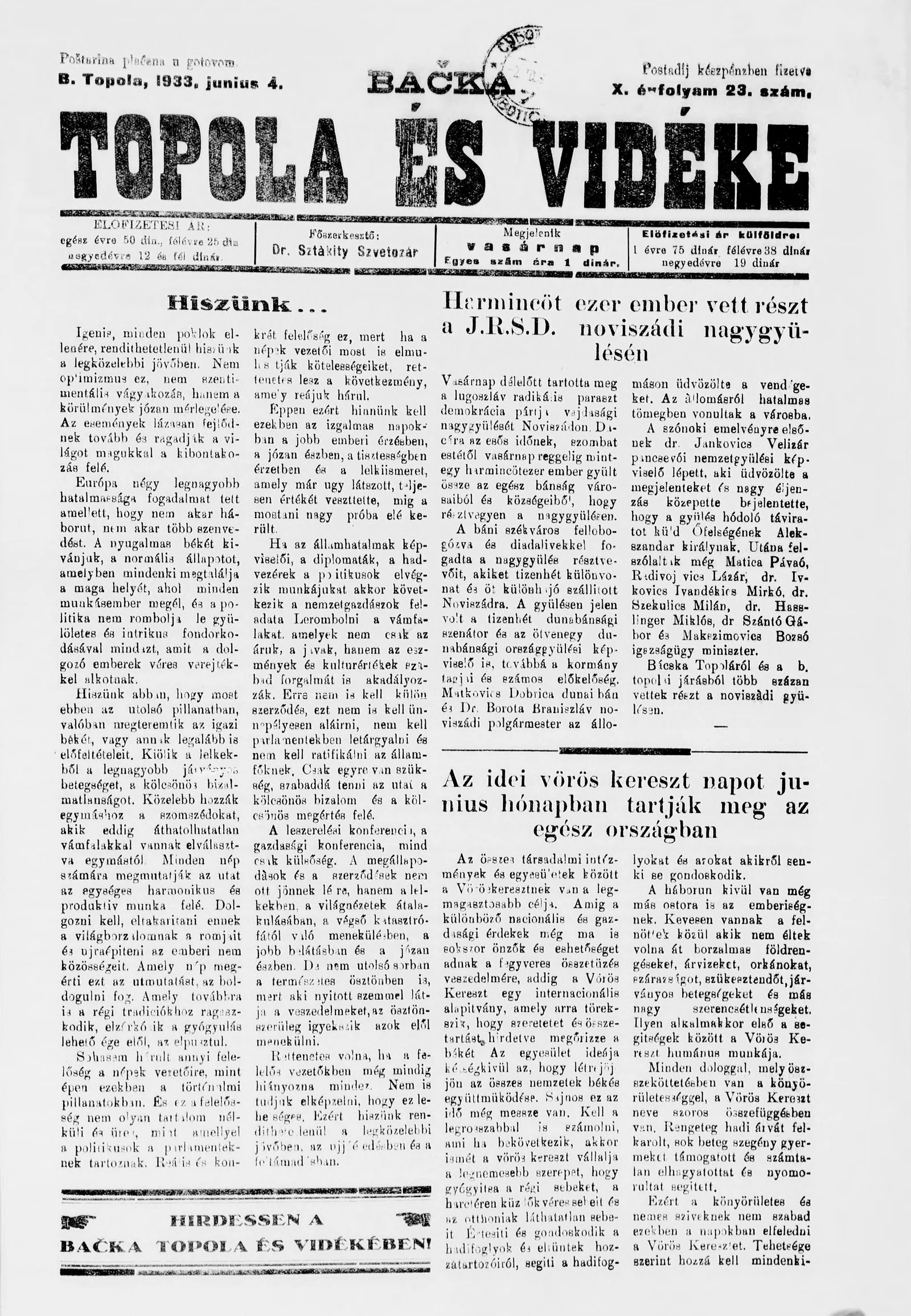 Bačka Topola és Vidéke, 10. évf. 1933. június 4. 23. sz.