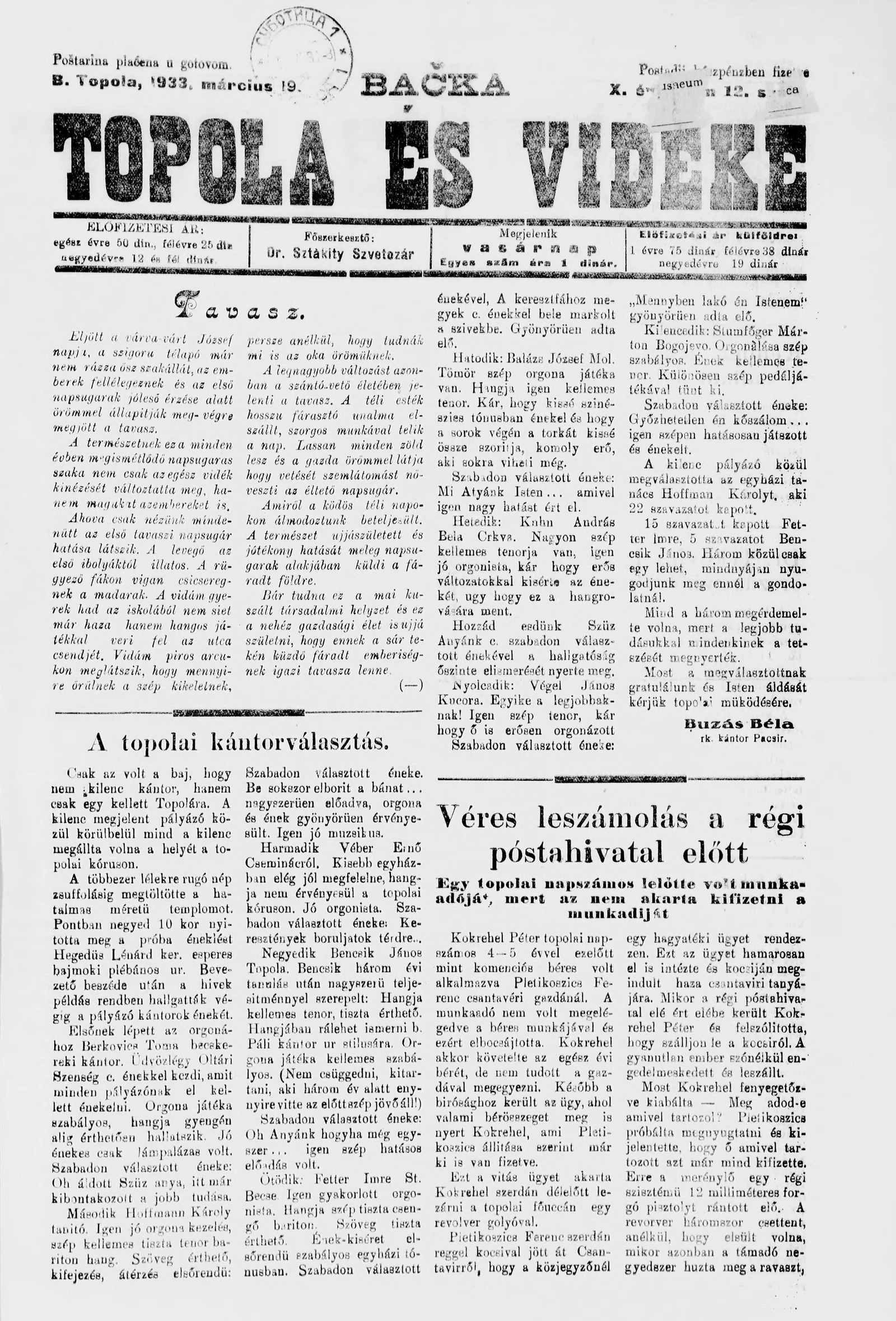 Bačka Topola és Vidéke, 10. évf. 1933. március 19. 12. sz.