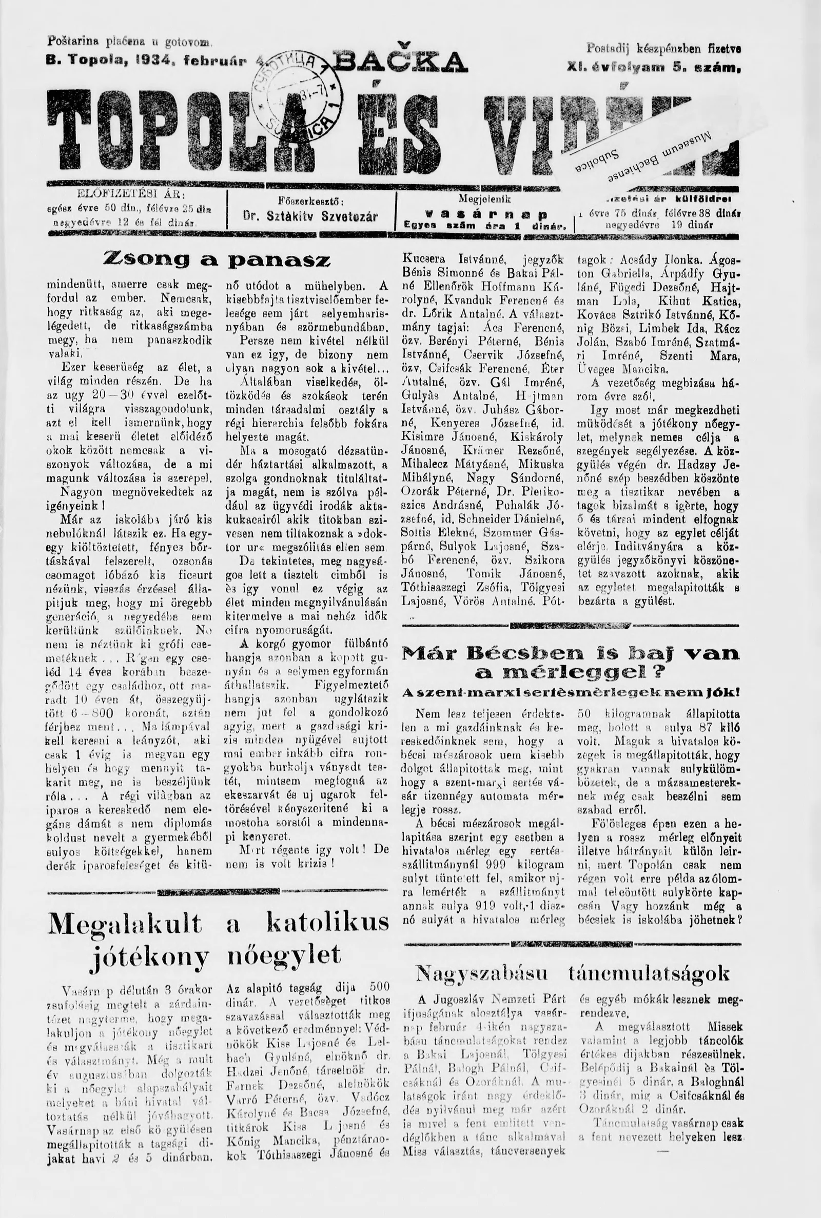 Bačka Topola és Vidéke, 11. évf. 1934. február 4. 5. sz.