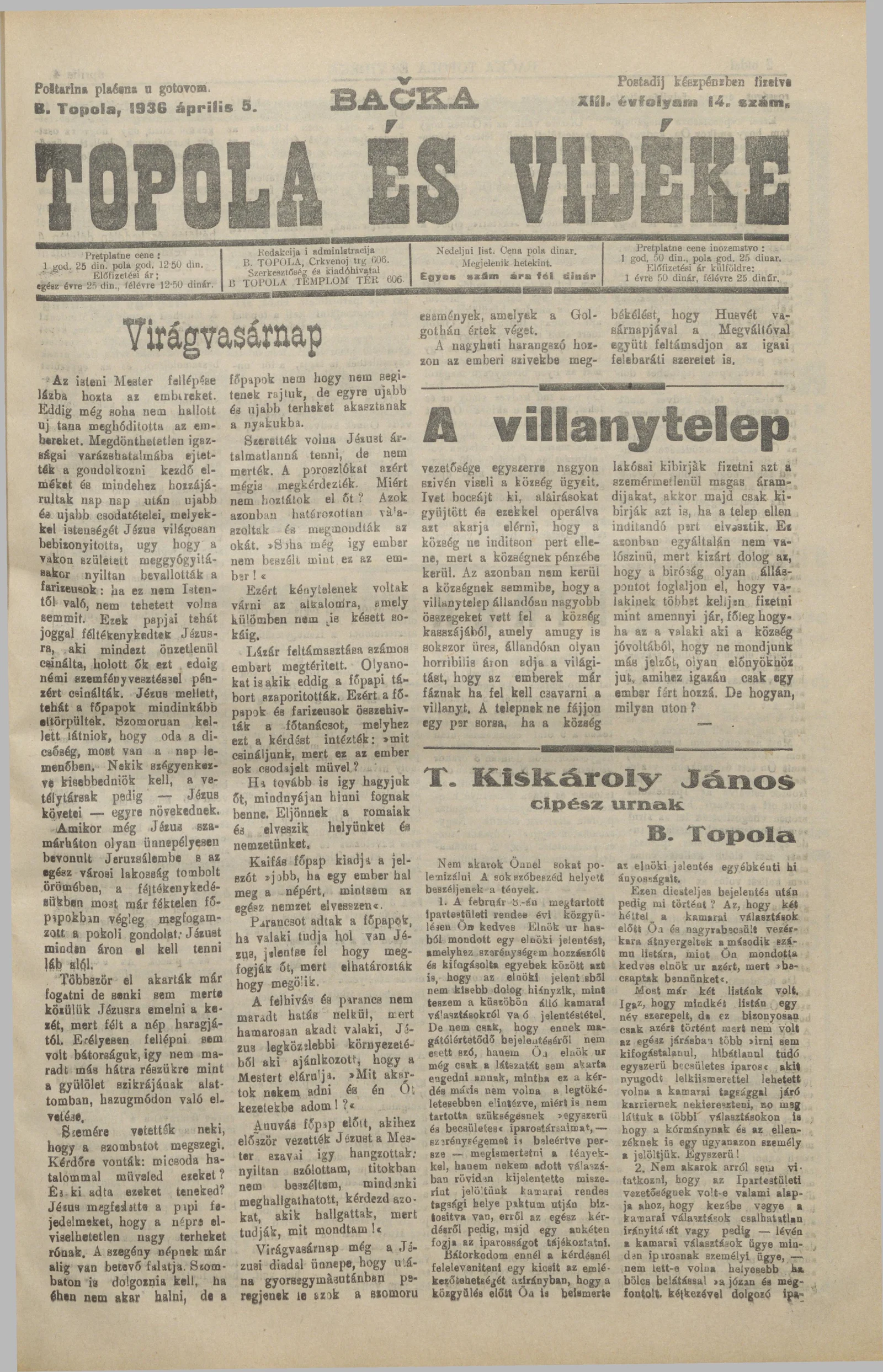 Bačka Topola és Vidéke, 13. évf. 1936. április 5. 14. sz.