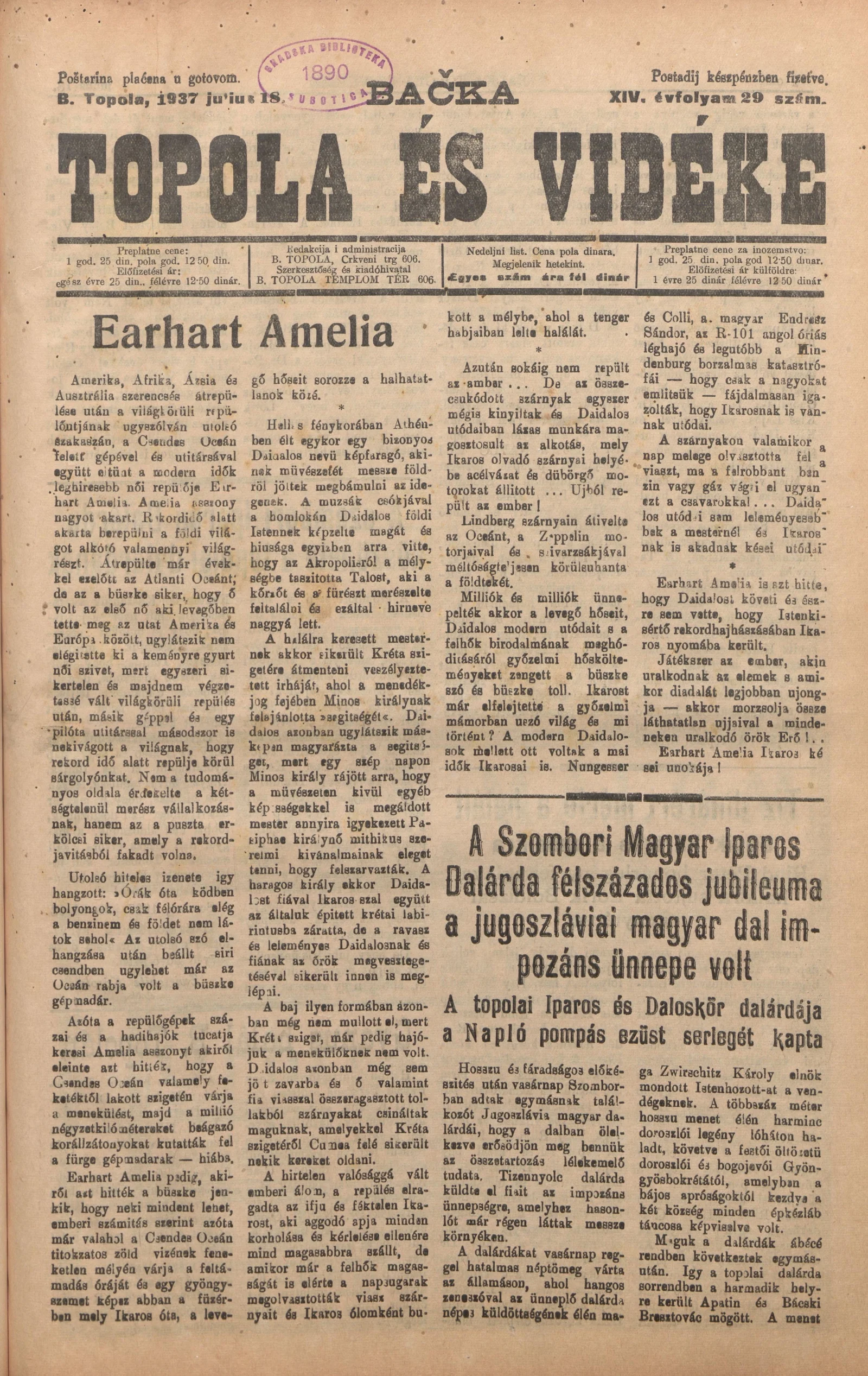 Bačka Topola és Vidéke, 14. évf. 1937. július 18. 29. sz.