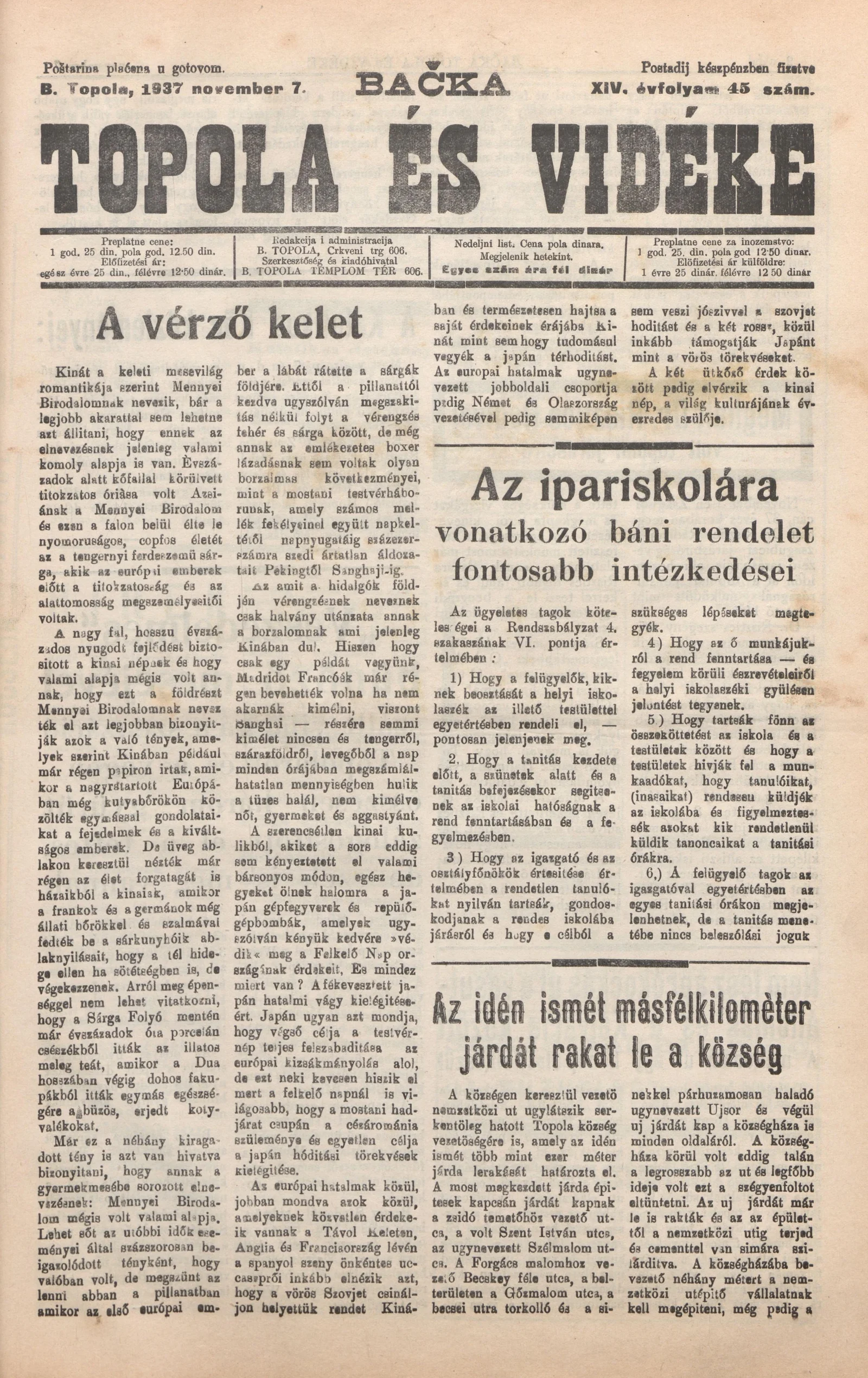 Bačka Topola és Vidéke, 14. évf. 1937. november 7. 45. sz.