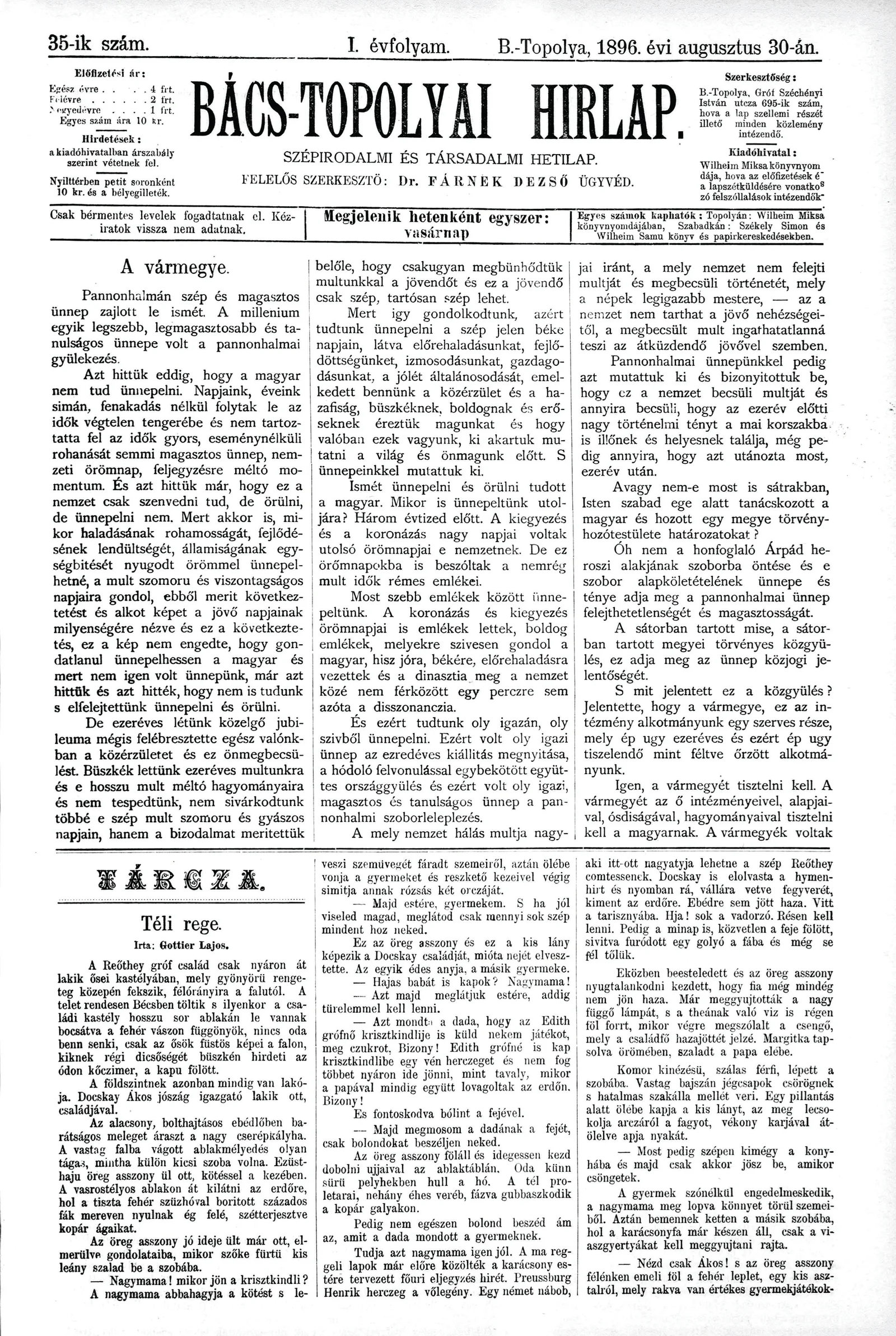 Bács-Topolyai Hirlap, 1. évf. 1896. augusztus 30. 35. sz.