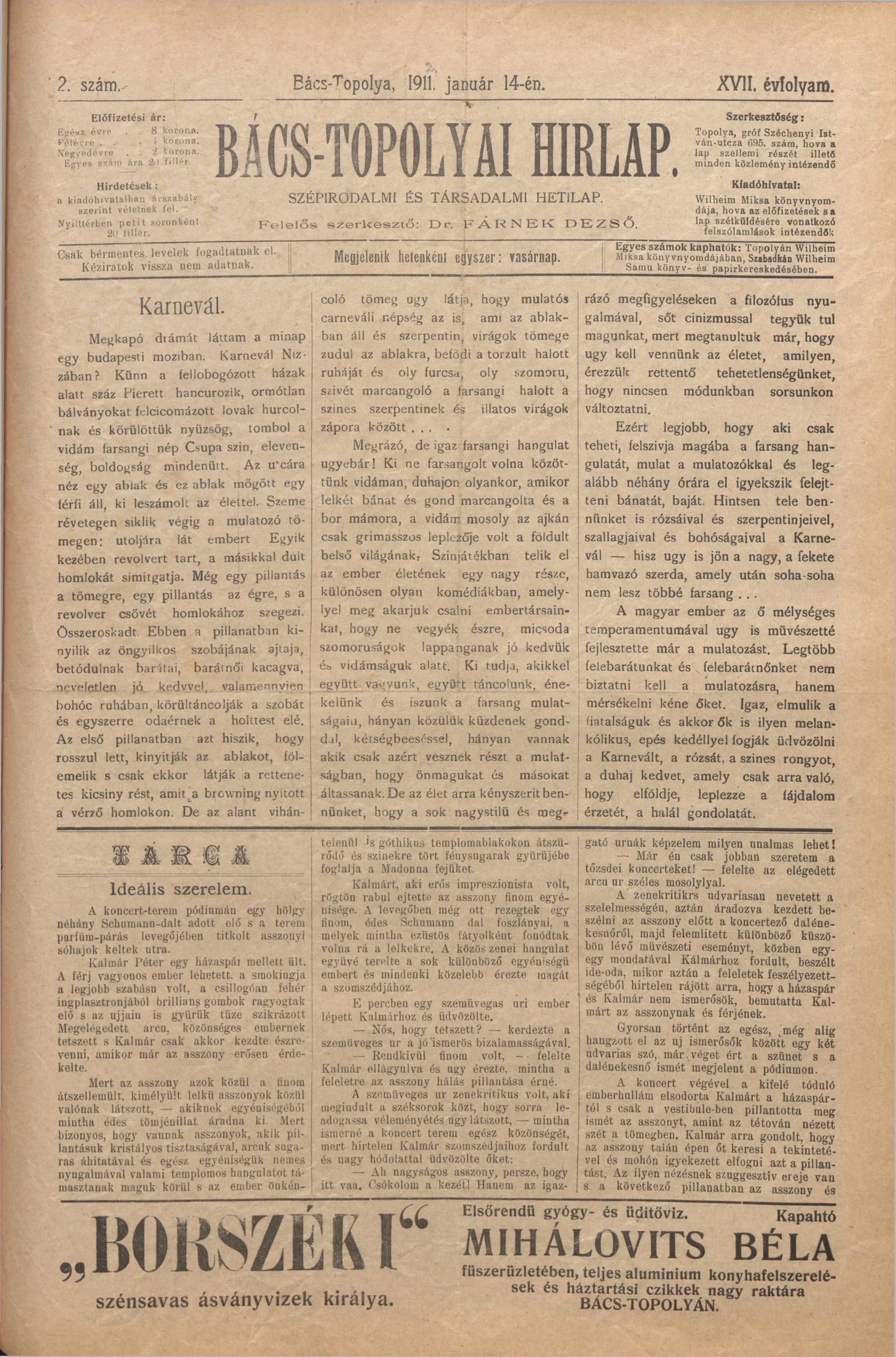 Bács-Topolyai Hirlap, 17. évf. 1912. január 14. 2. sz.