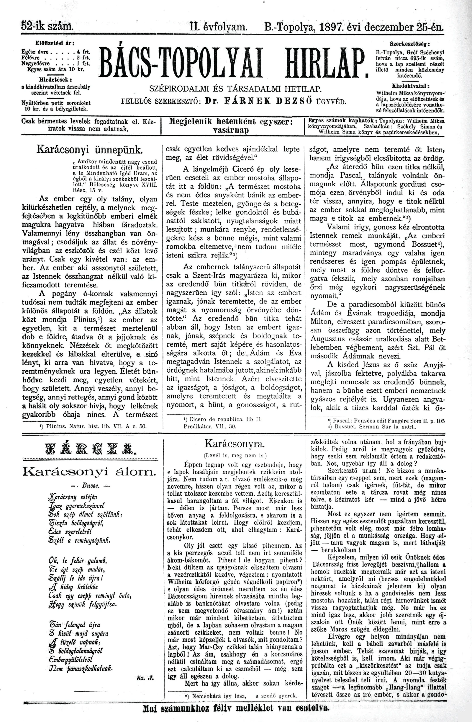 Bács-Topolyai Hirlap, 2. évf. 1897. december 25. 52. sz.