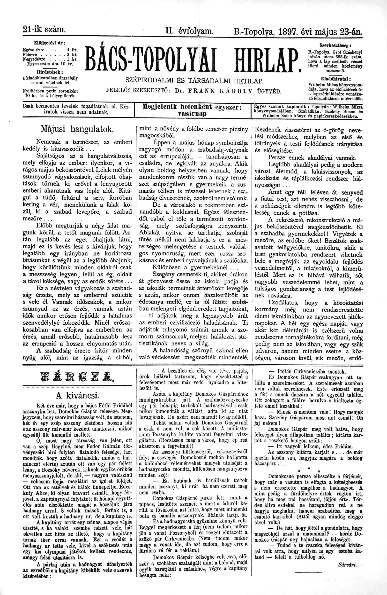 Bács-Topolyai Hirlap, 2. évf. 1897. május 23. 21. sz.