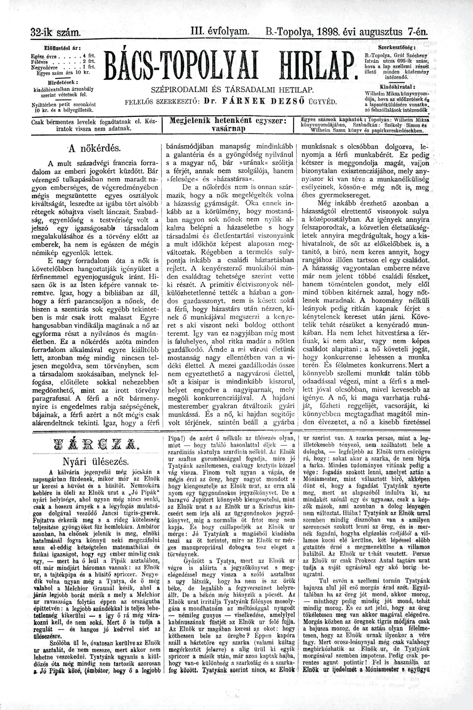 Bács-Topolyai Hirlap, 3. évf. 1898. augusztus 7. 32. sz.