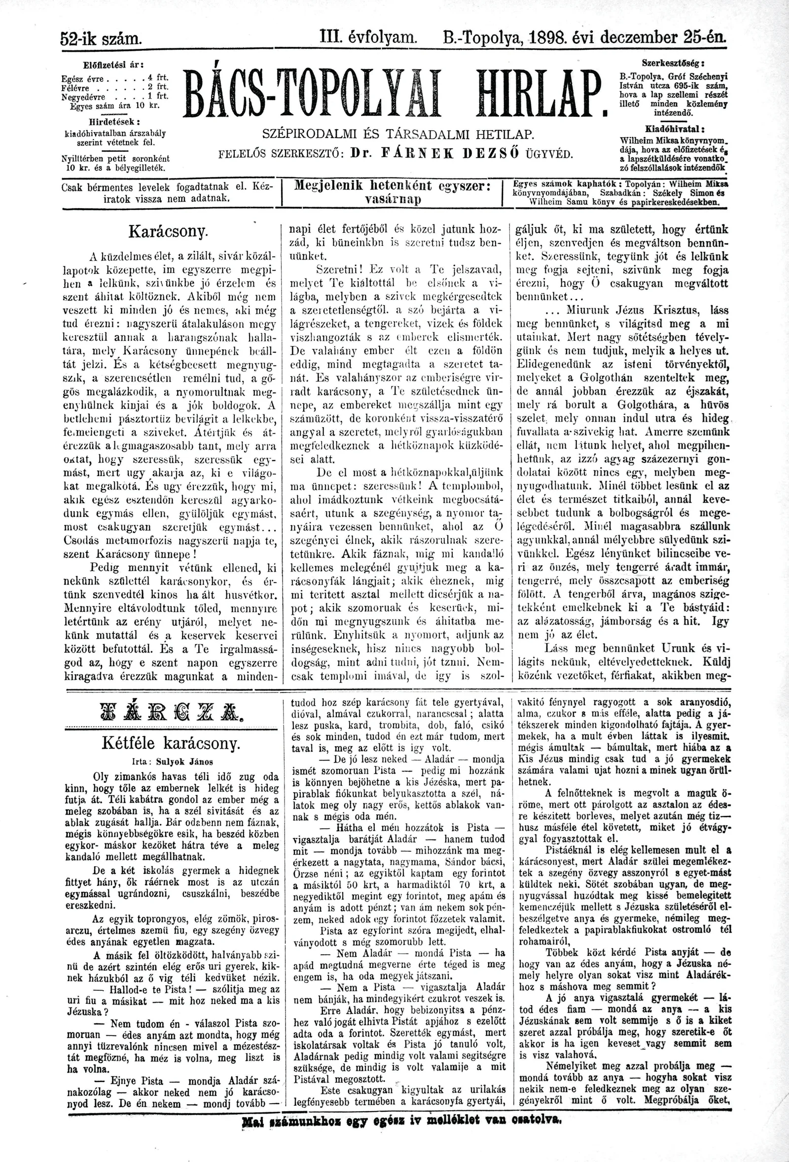 Bács-Topolyai Hirlap, 3. évf. 1898. december 25. 52. sz.