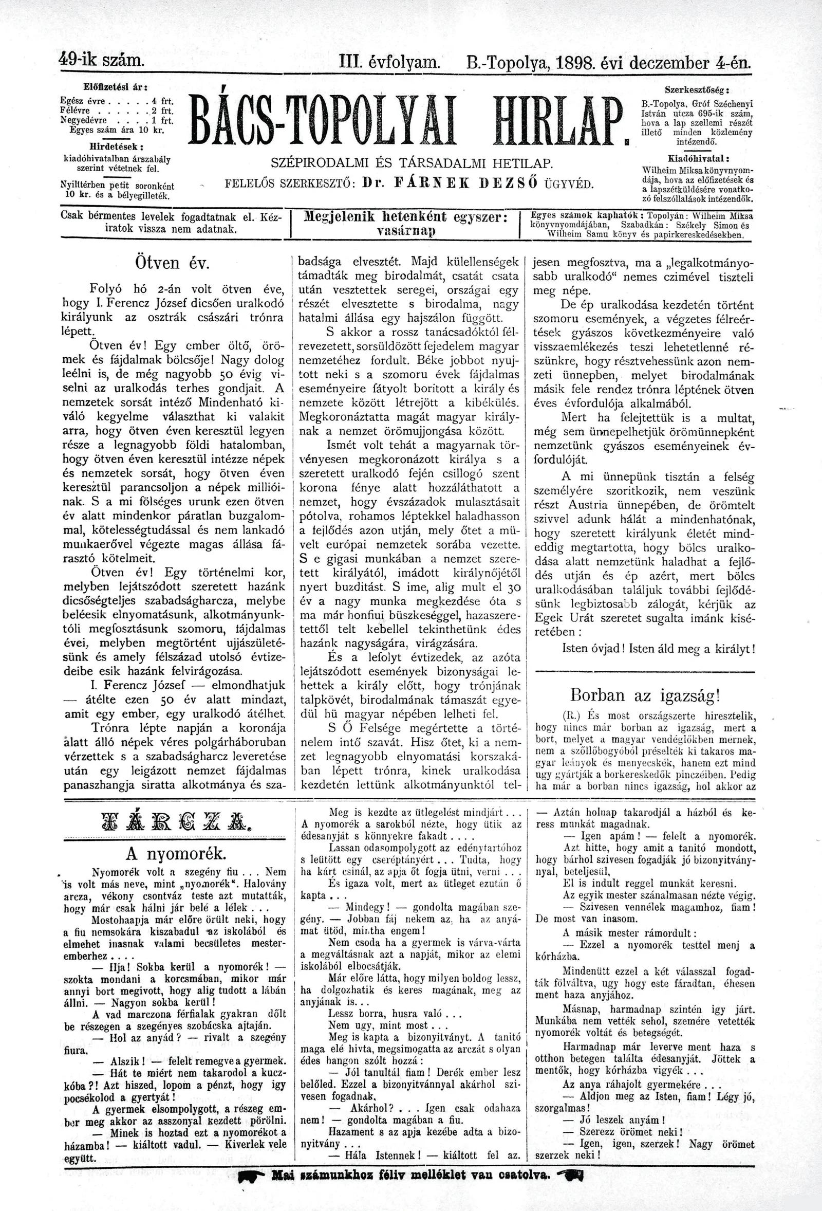 Bács-Topolyai Hirlap, 3. évf. 1898. december 4. 49. sz.