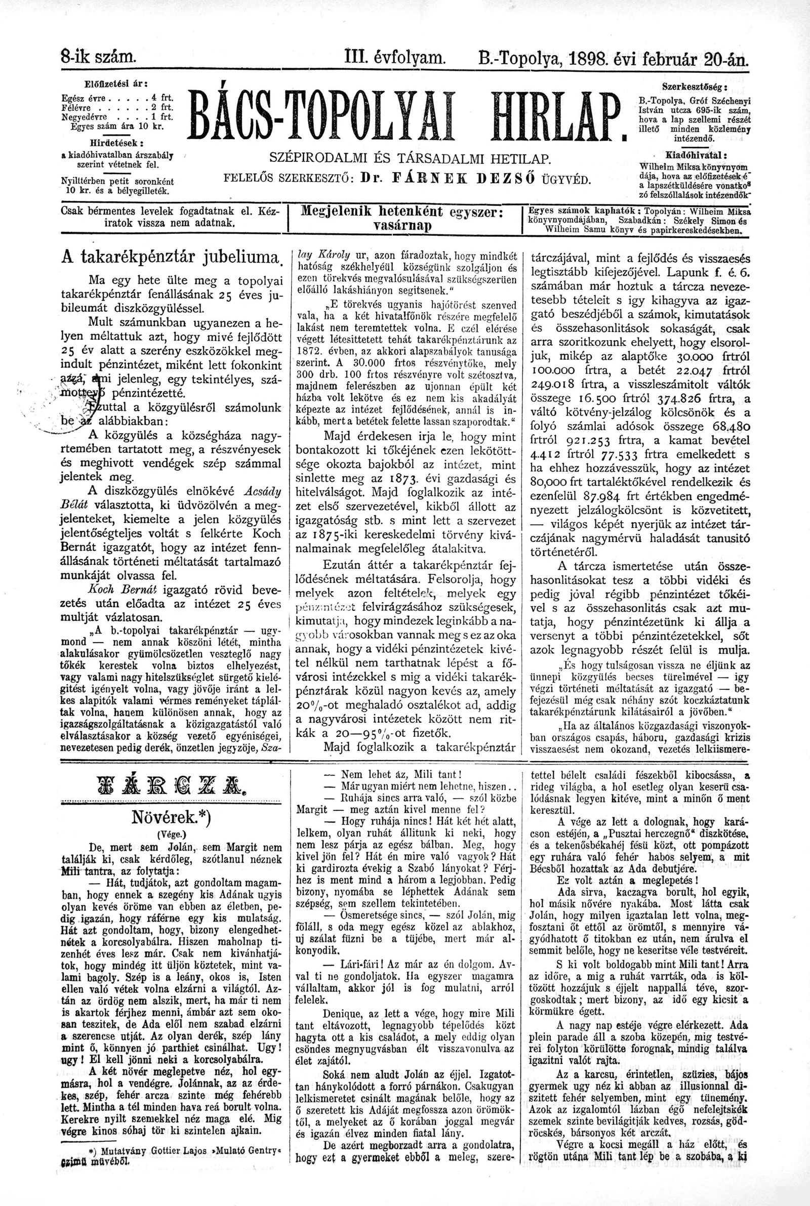 Bács-Topolyai Hirlap, 3. évf. 1898. február 20. 8. sz.