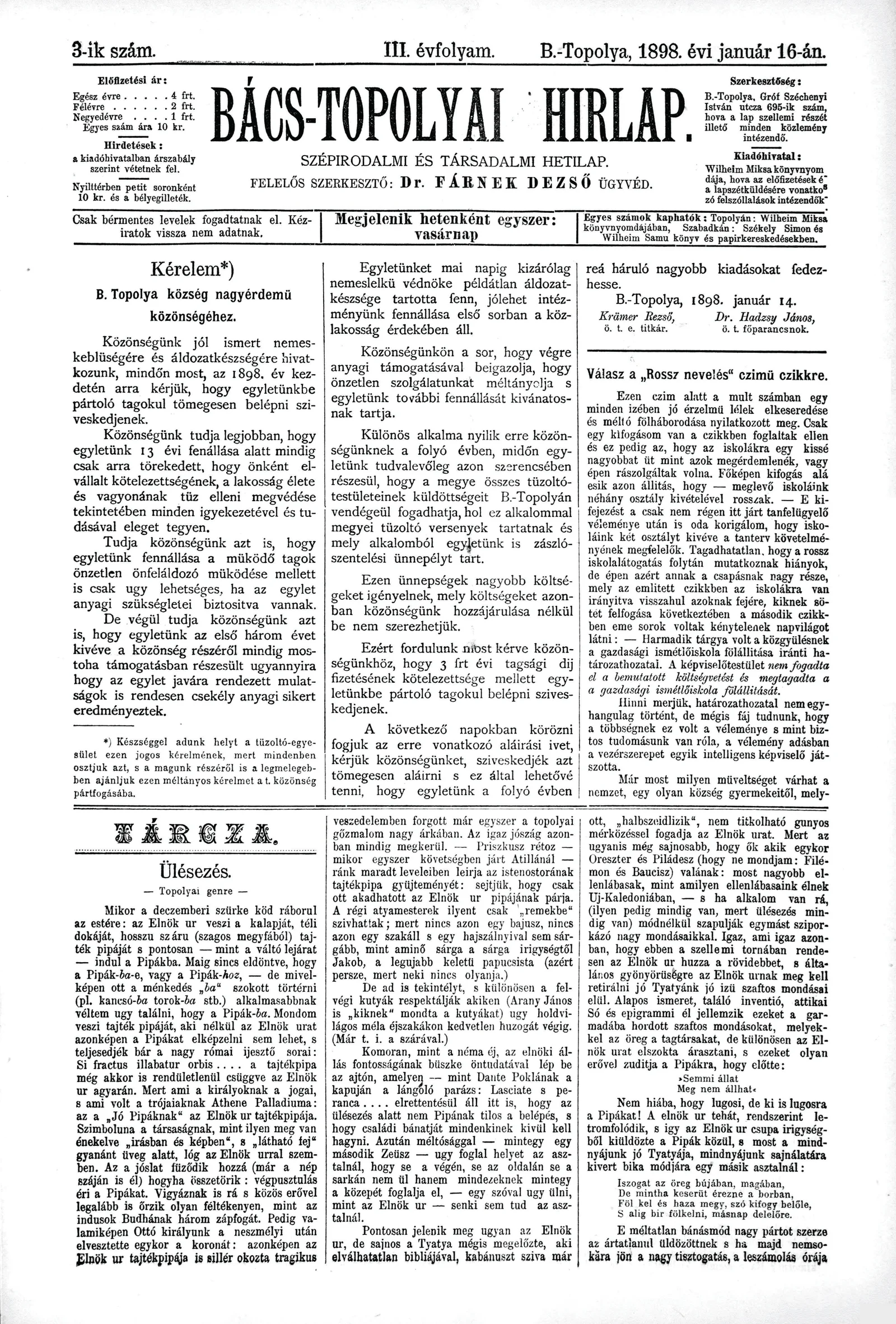 Bács-Topolyai Hirlap, 3. évf. 1898. január 16. 3. sz.