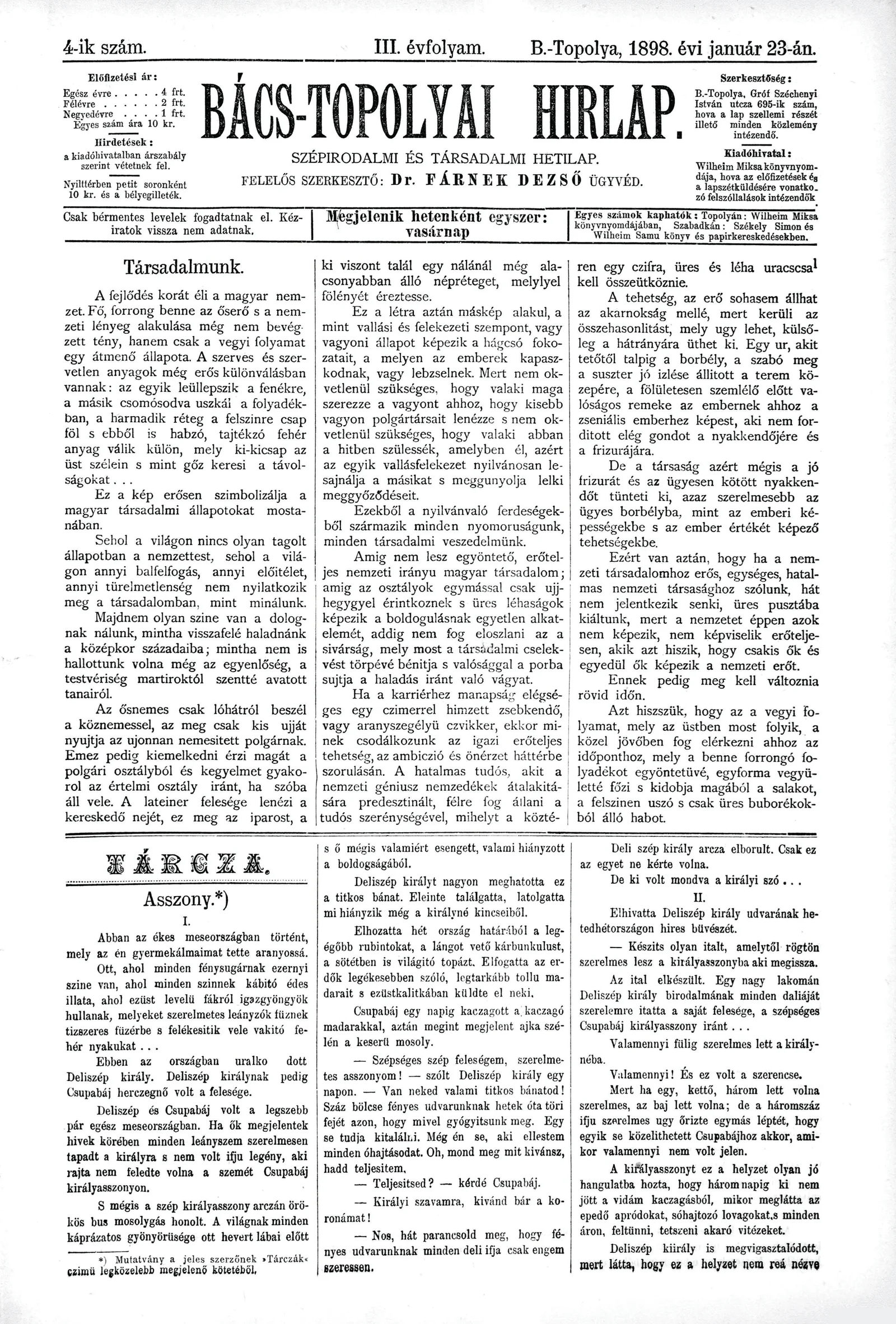 Bács-Topolyai Hirlap, 3. évf. 1898. január 23. 4. sz.
