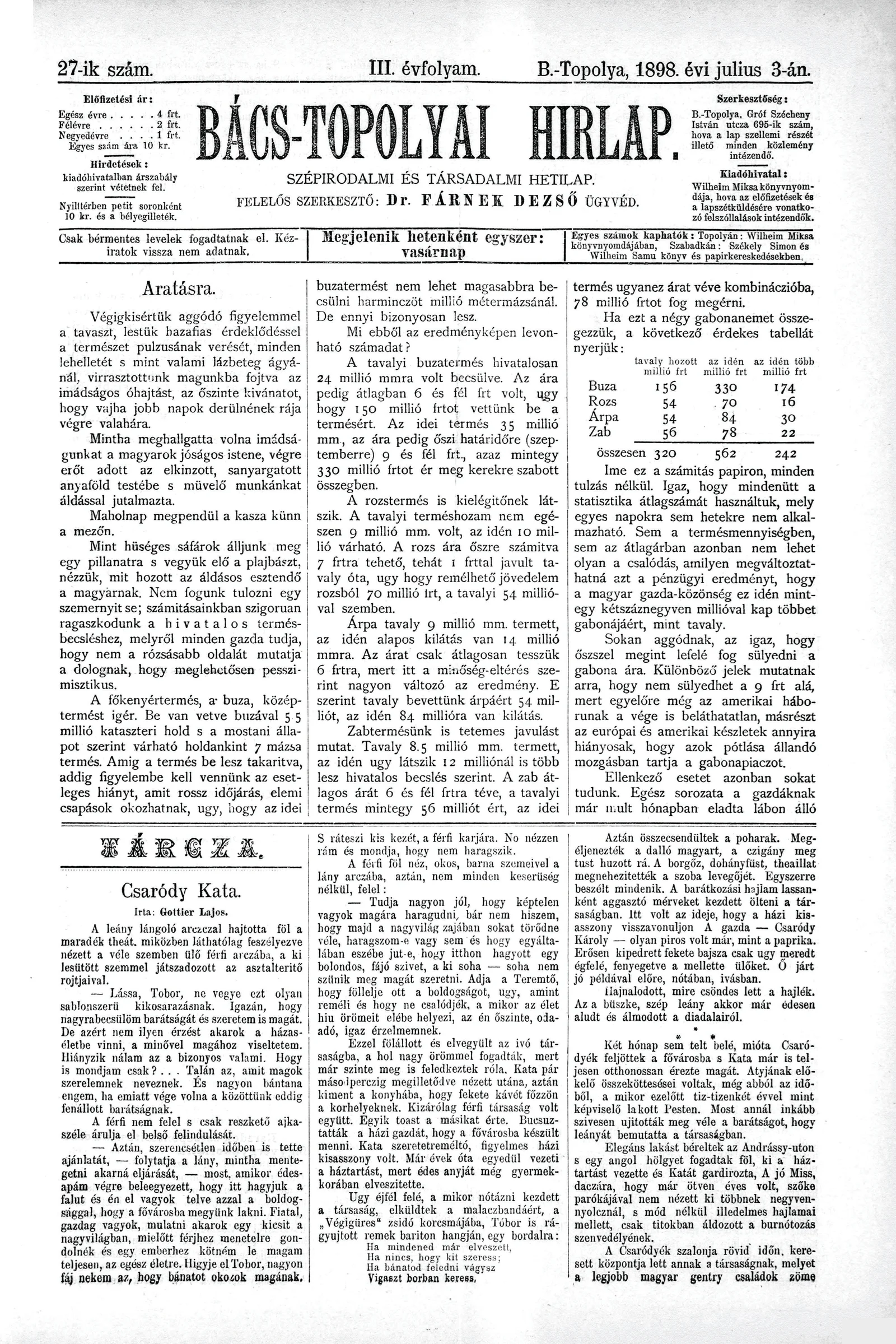 Bács-Topolyai Hirlap, 3. évf. 1898. július 3. 27. sz.