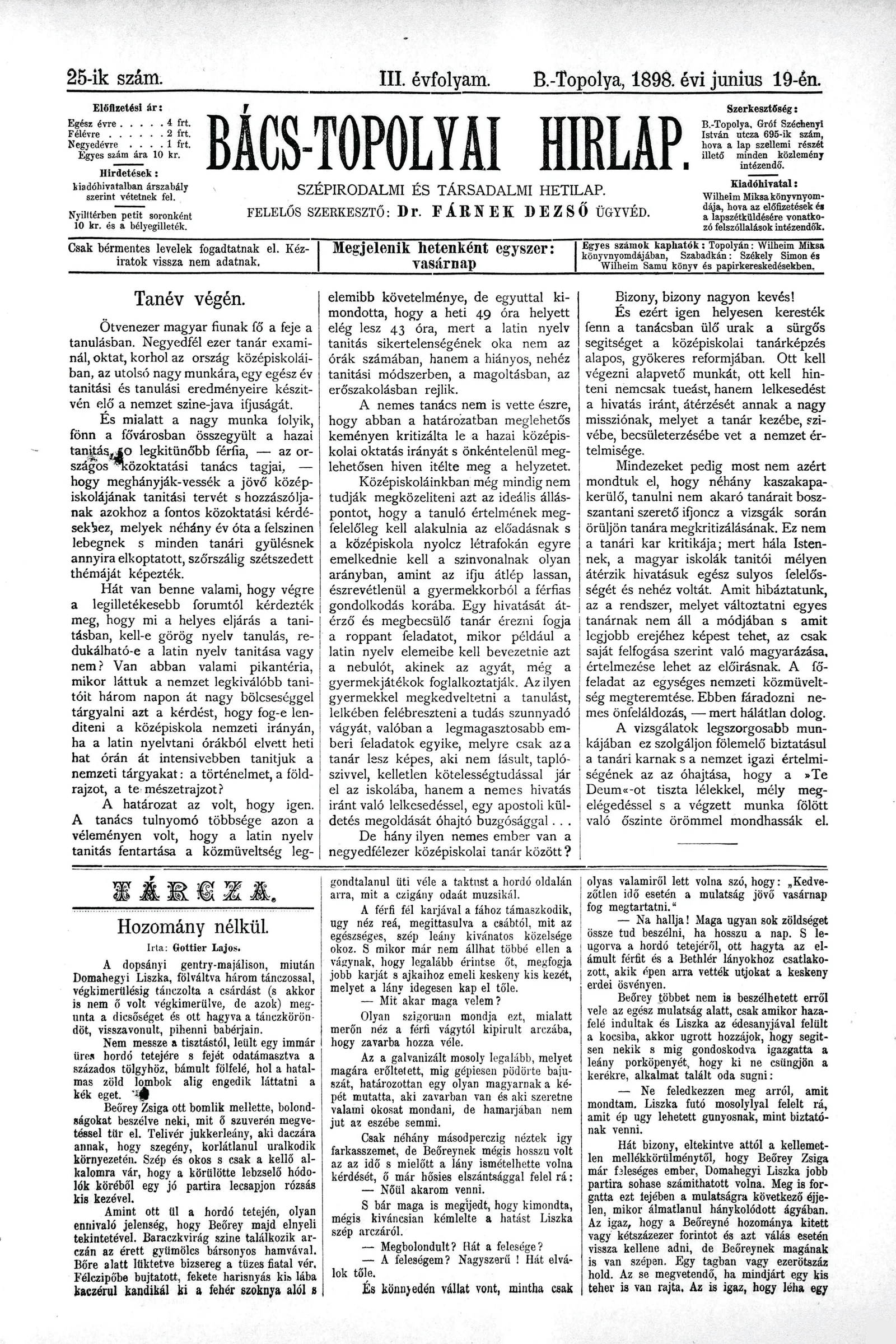 Bács-Topolyai Hirlap, 3. évf. 1898. június 19. 25. sz.