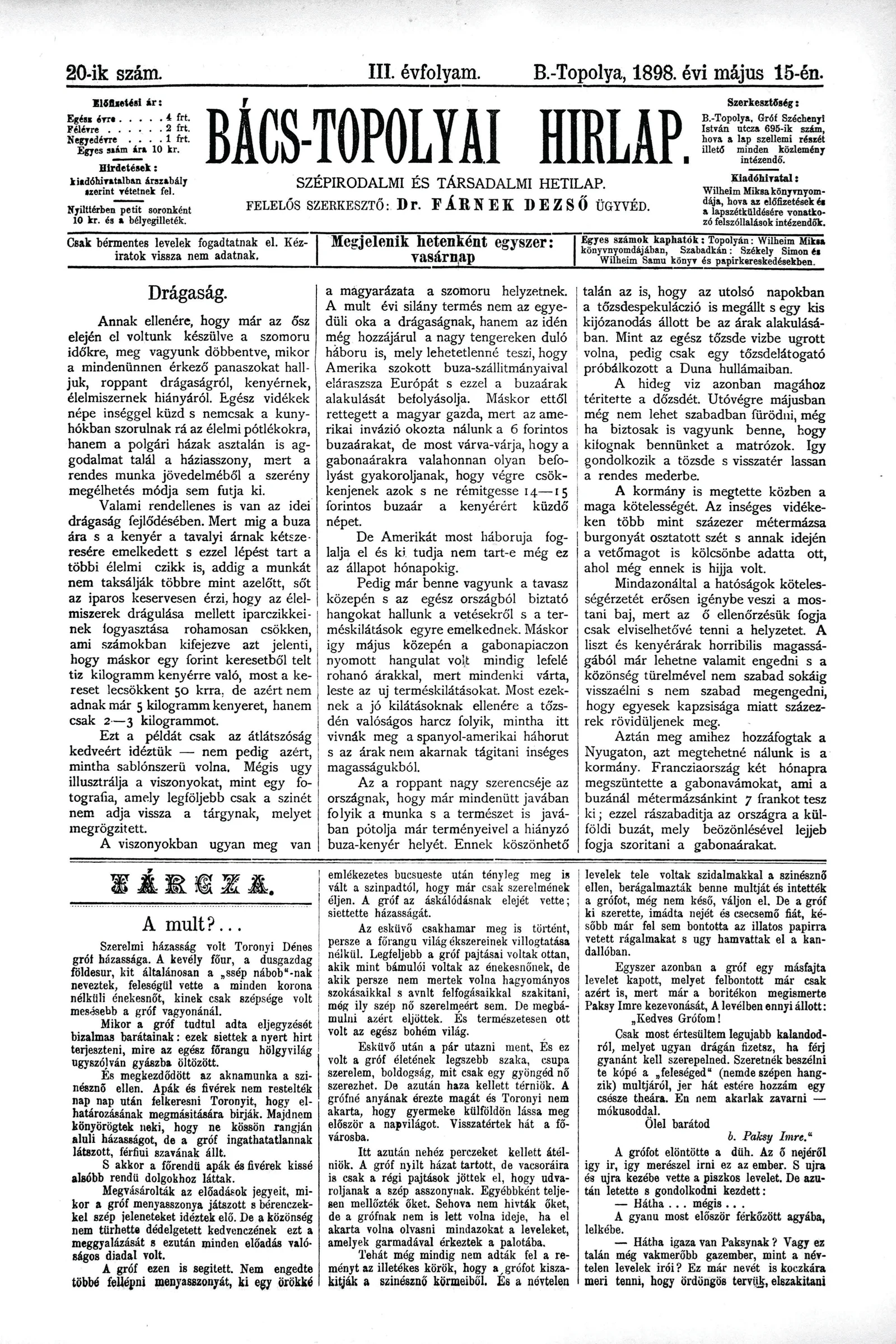 Bács-Topolyai Hirlap, 3. évf. 1898. május 15. 20. sz.