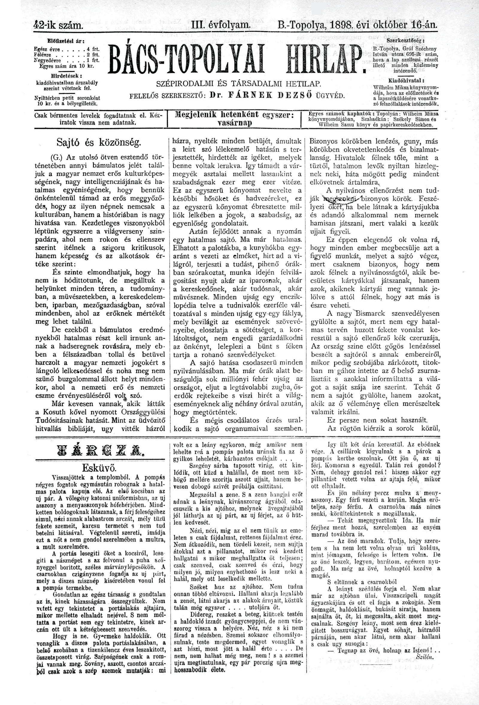 Bács-Topolyai Hirlap, 3. évf. 1898. október 16. 42. sz.