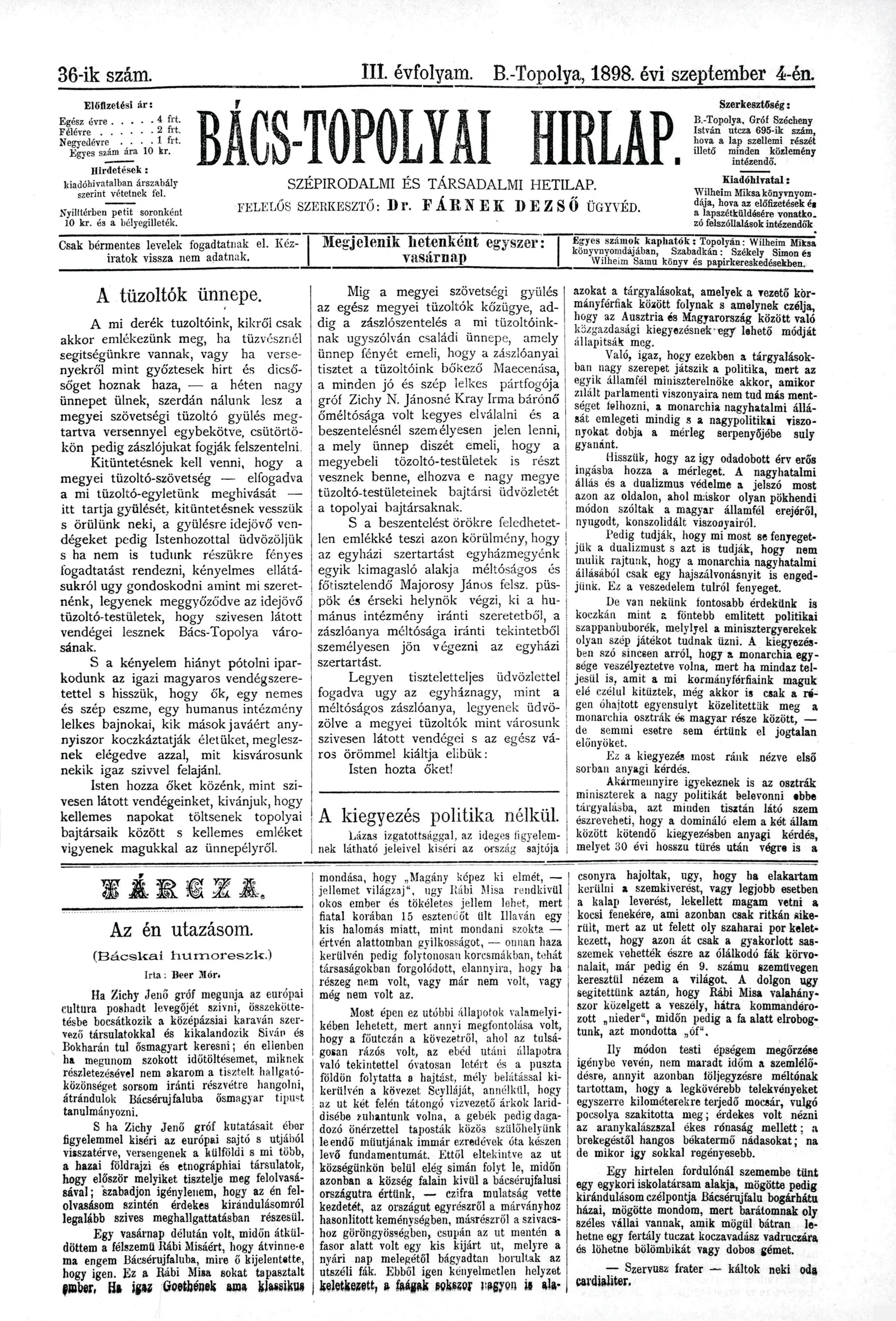 Bács-Topolyai Hirlap, 3. évf. 1898. szeptember 4. 36. sz.