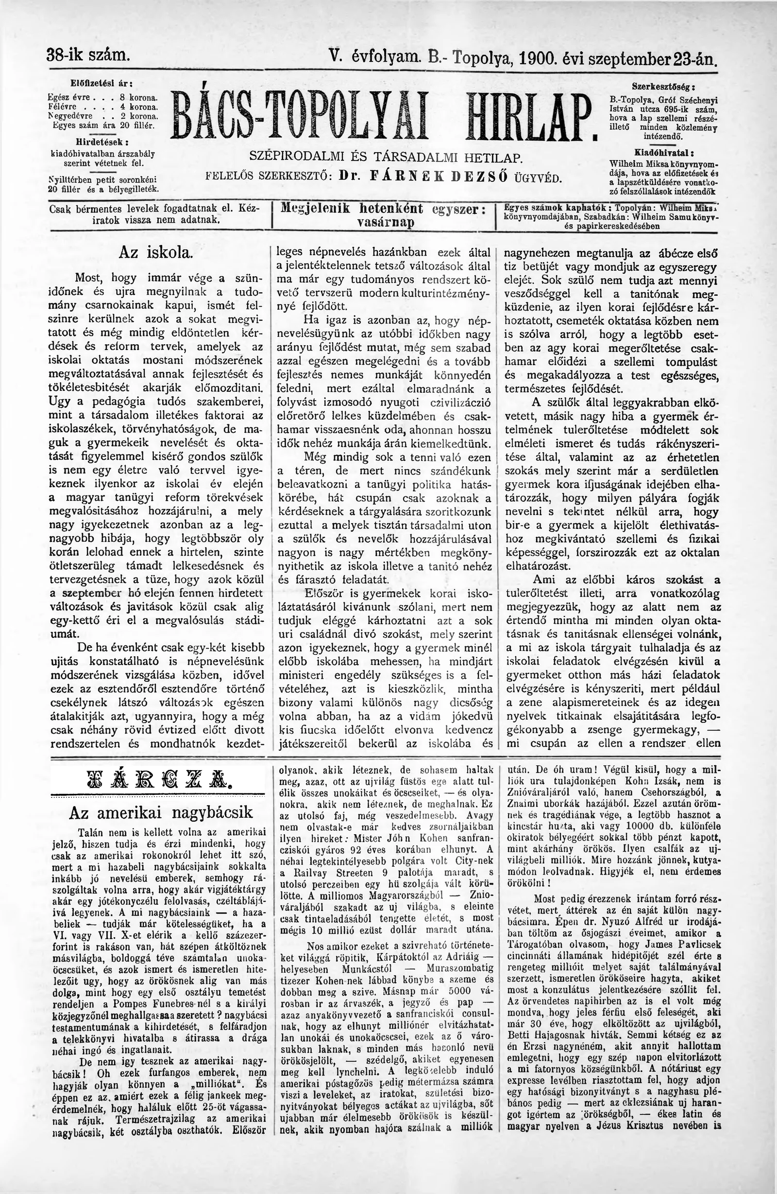 Bács-Topolyai Hirlap, 5. évf. 1900. augusztus 23. 38. sz.