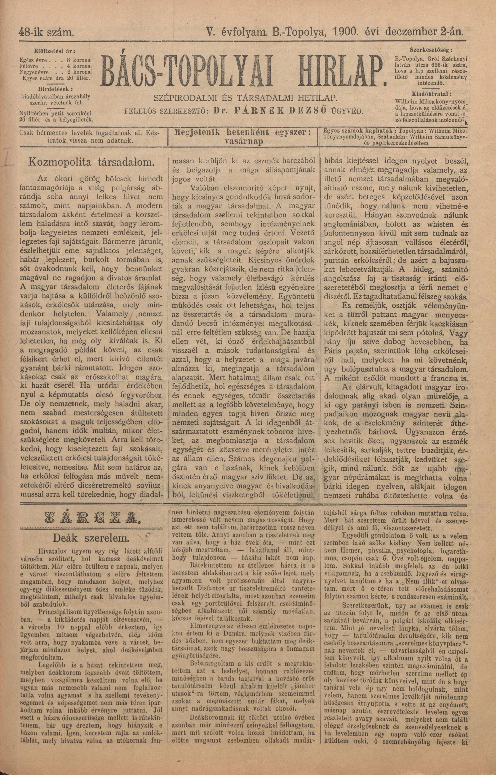 Bács-Topolyai Hirlap, 5. évf. 1900. december 2. 48. sz.