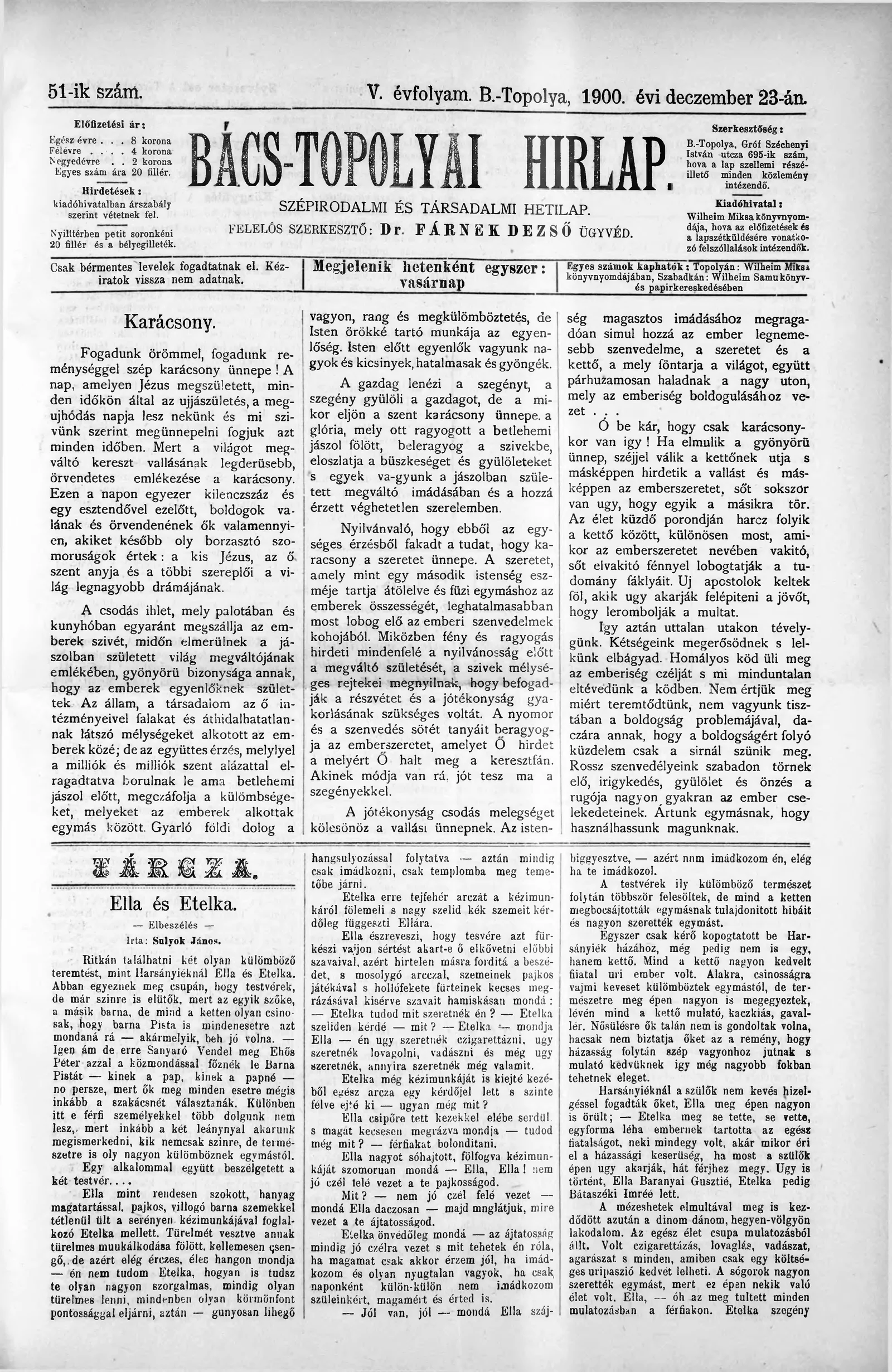 Bács-Topolyai Hirlap, 5. évf. 1900. december 23. 51. sz.