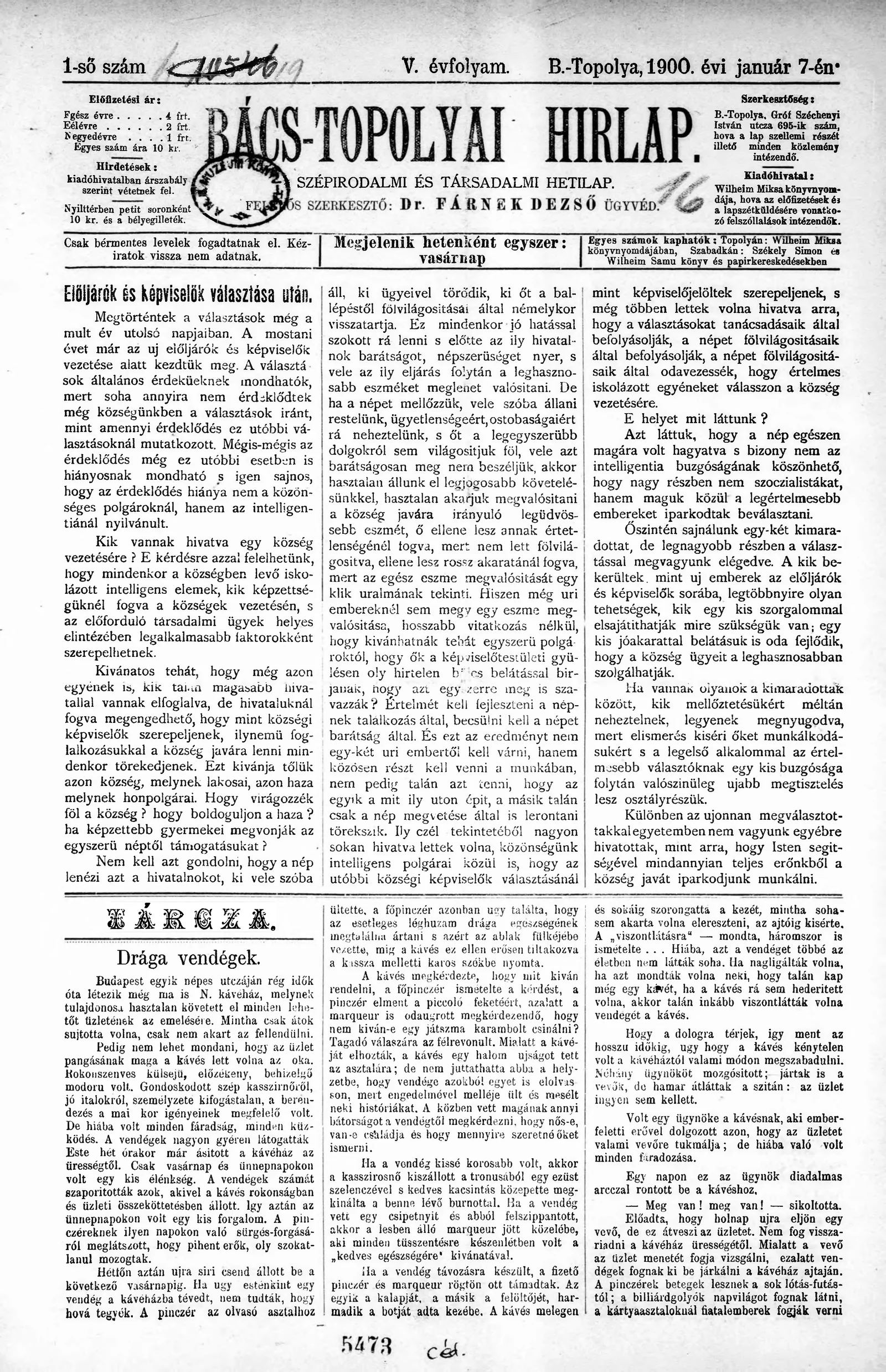 Bács-Topolyai Hirlap, 5. évf. 1900. január 7. 1. sz.