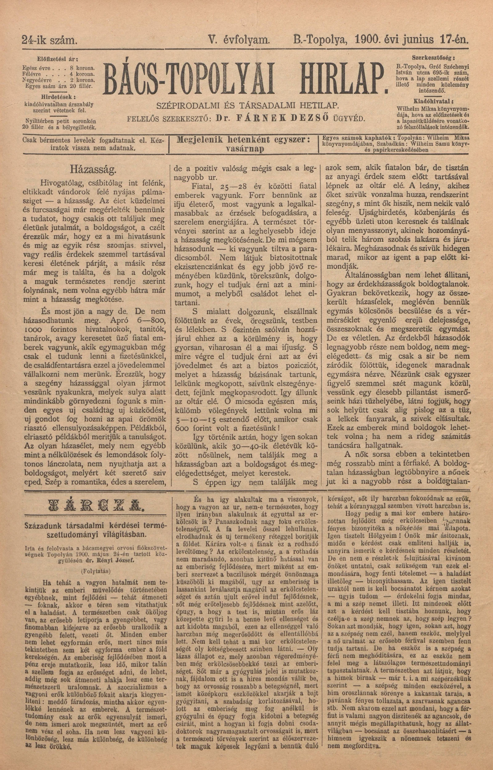 Bács-Topolyai Hirlap, 5. évf. 1900. június 17. 24. sz.