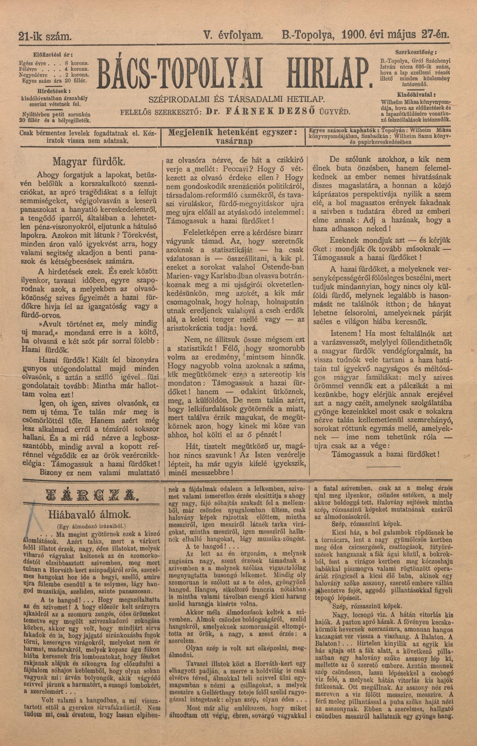 Bács-Topolyai Hirlap, 5. évf. 1900. május 27. 21. sz.