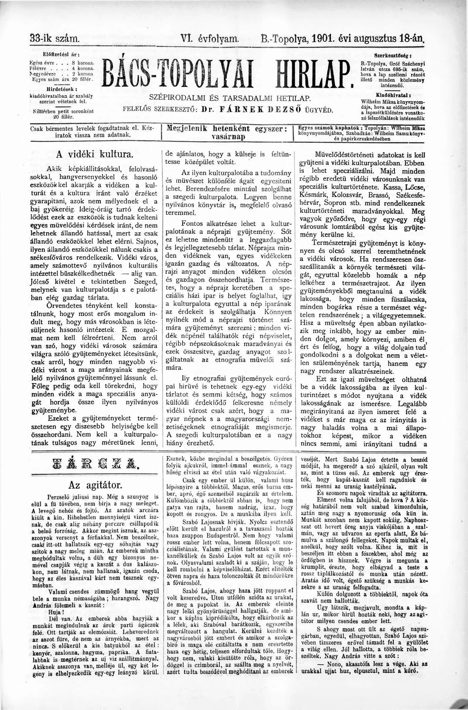 Bács-Topolyai Hirlap, 6. évf. 1901. augusztus 18. 33. sz.