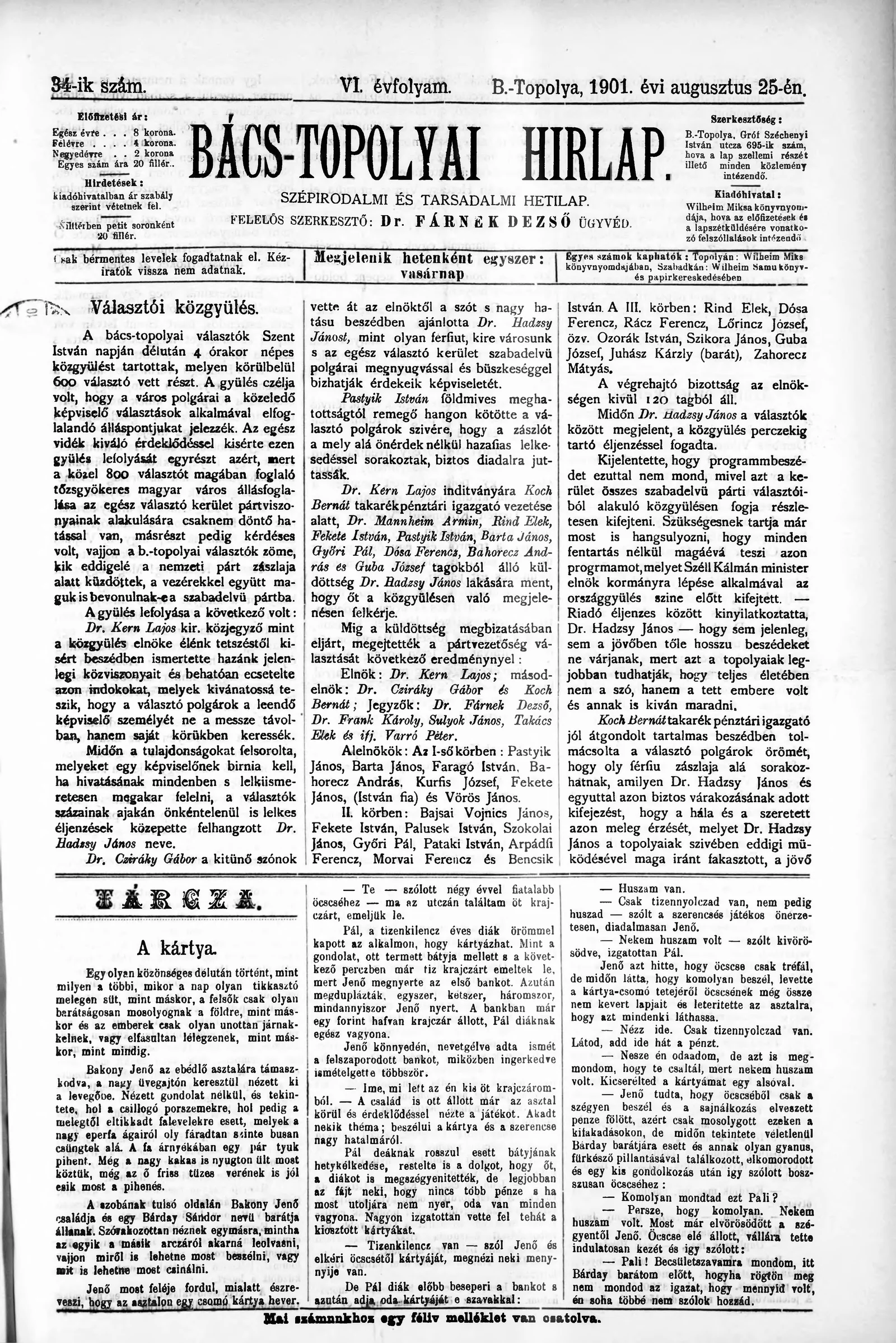 Bács-Topolyai Hirlap, 6. évf. 1901. augusztus 25. 34. sz.