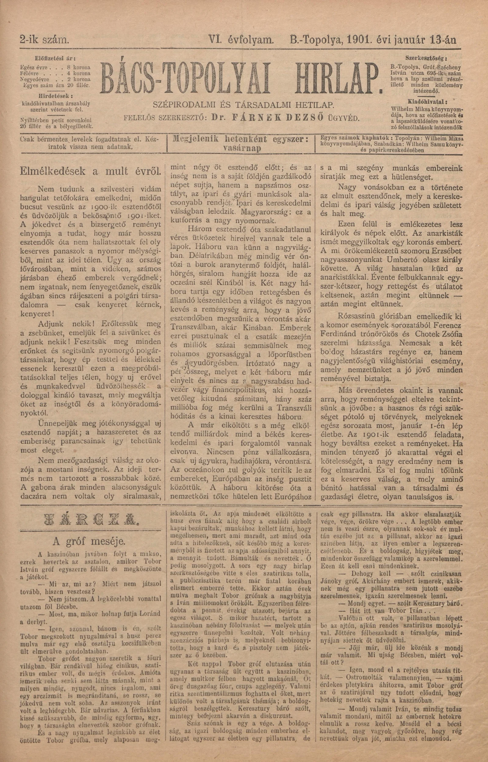 Bács-Topolyai Hirlap, 6. évf. 1901. január 13. 2. sz.