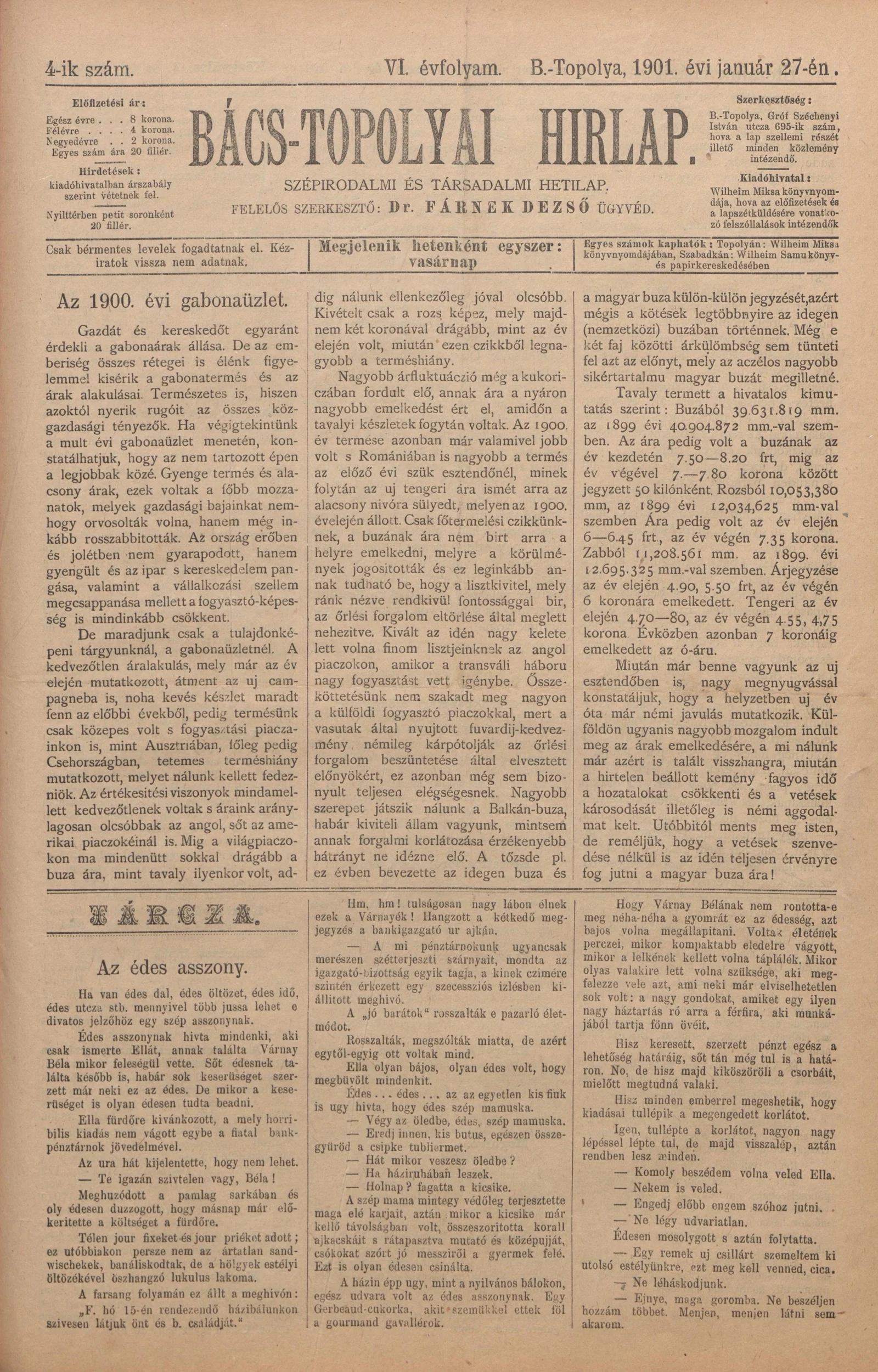 Bács-Topolyai Hirlap, 6. évf. 1901. január 27. 4. sz.
