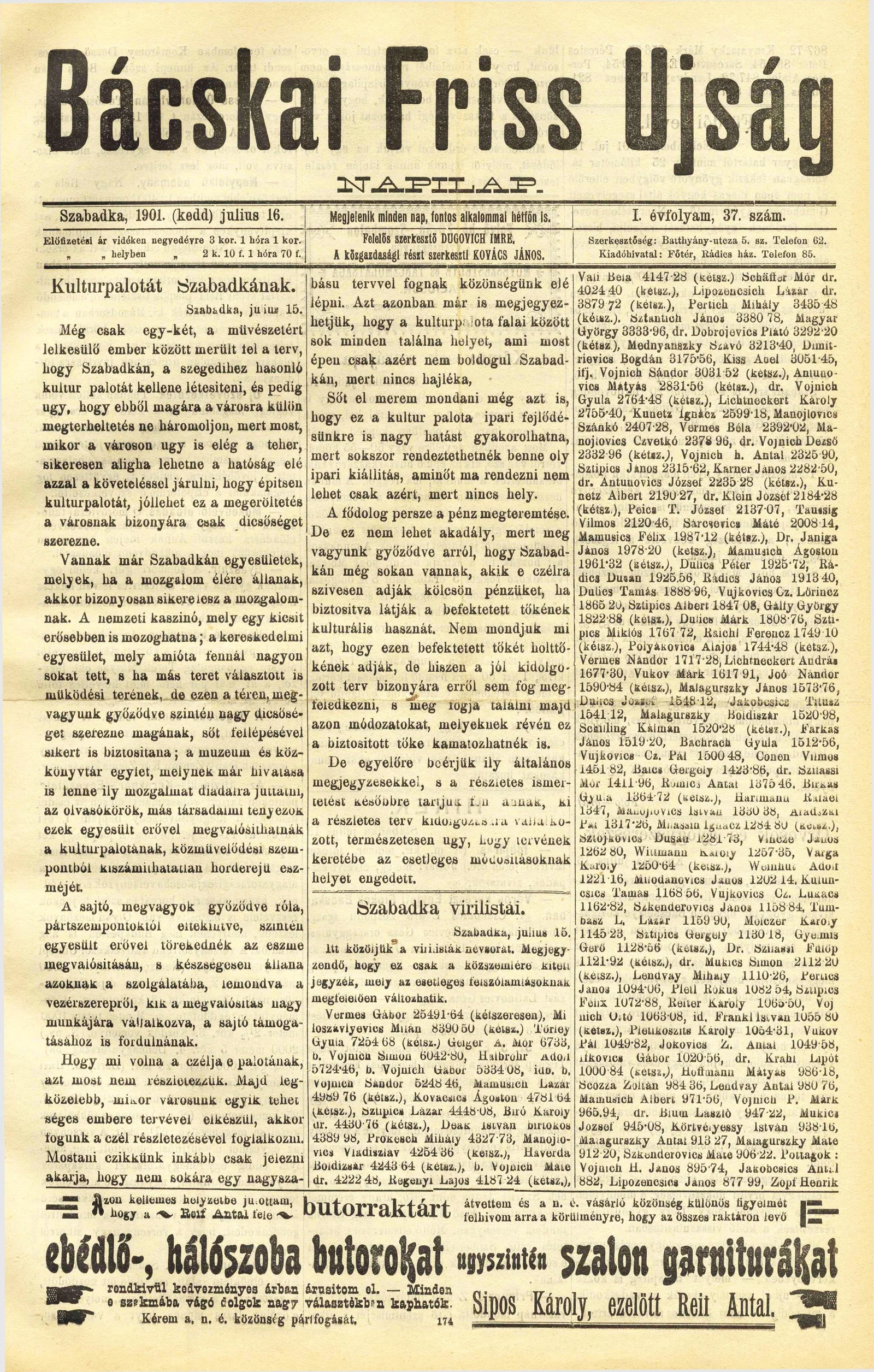 Bácskai Friss Ujság, 1. évf. 1901. július 16. 37. sz.