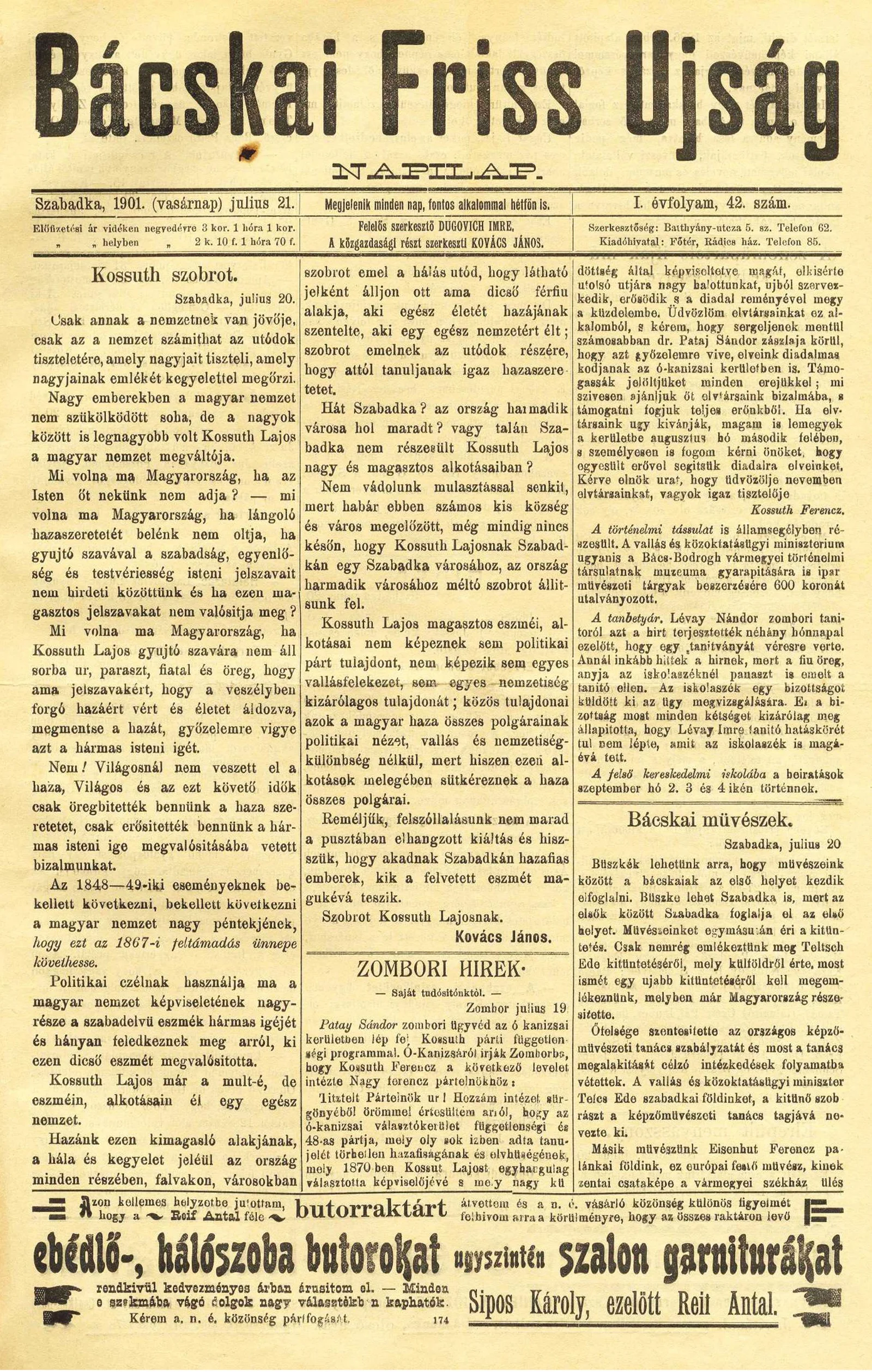 Bácskai Friss Ujság, 1. évf. 1901. július 21. 42. sz.