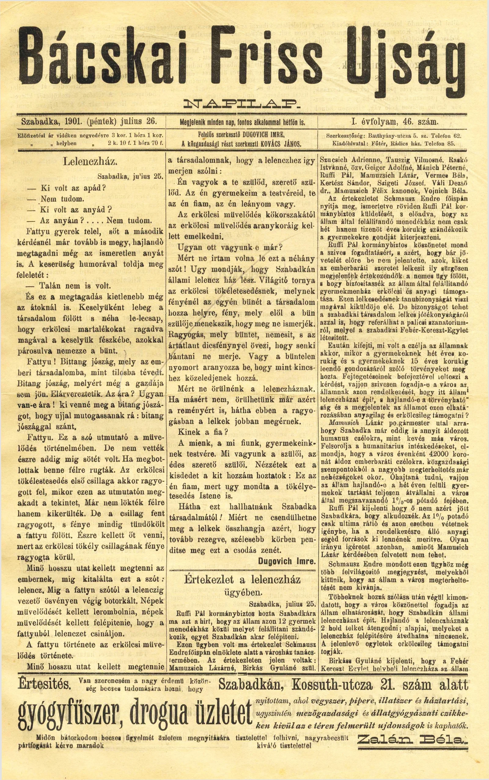 Bácskai Friss Ujság, 1. évf. 1901. július 26. 46. sz.