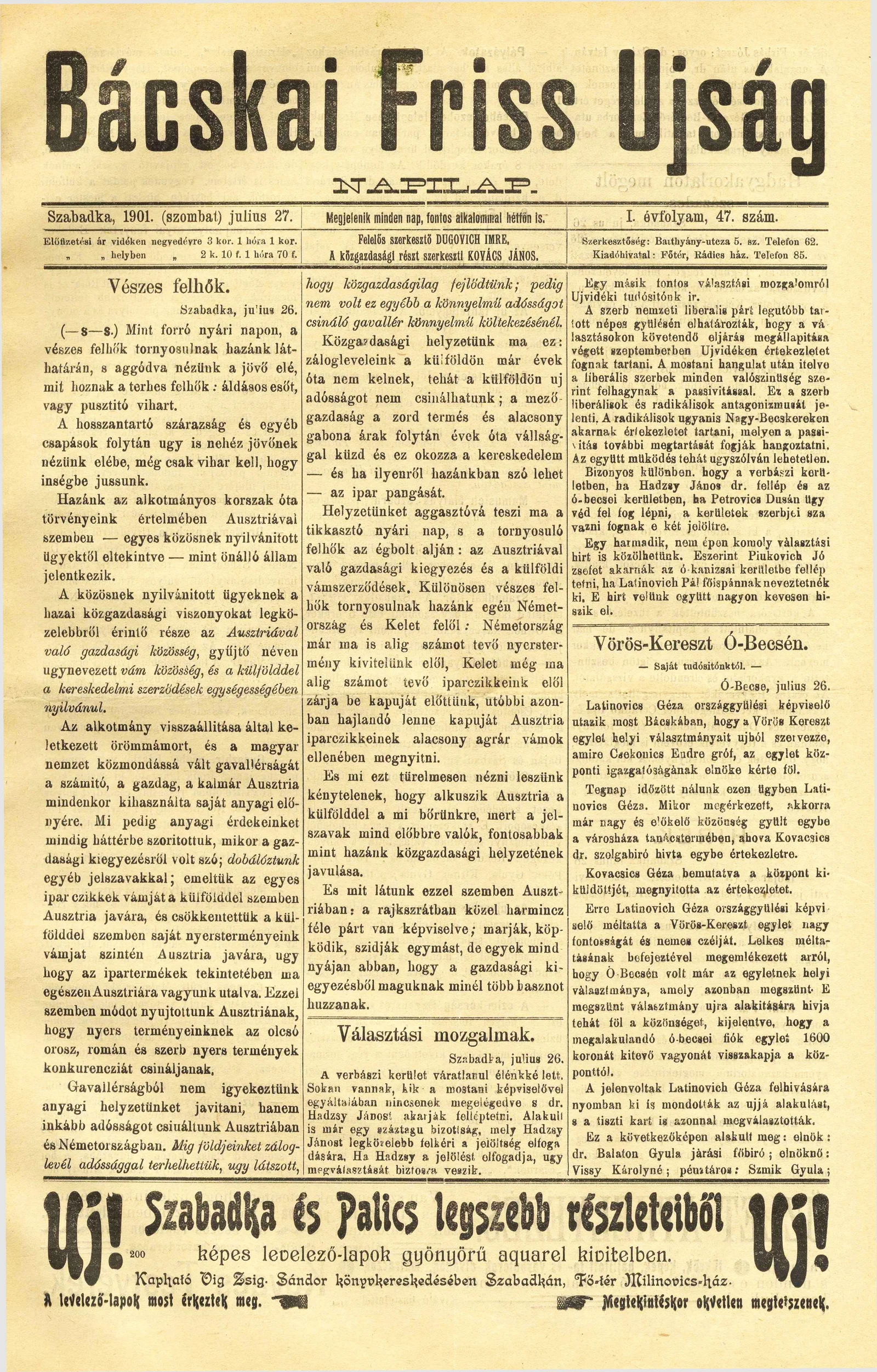 Bácskai Friss Ujság, 1. évf. 1901. július 27. 47. sz.