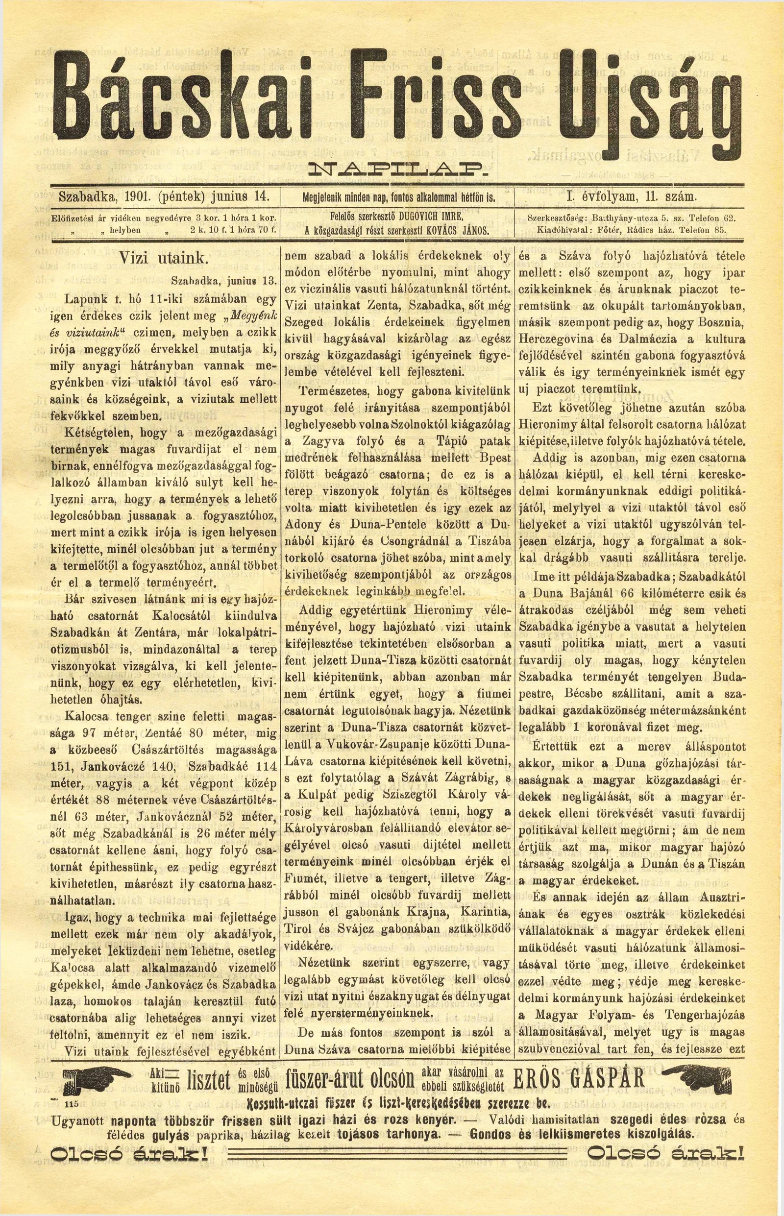 Bácskai Friss Ujság, 1. évf. 1901. június 14. 11. sz.